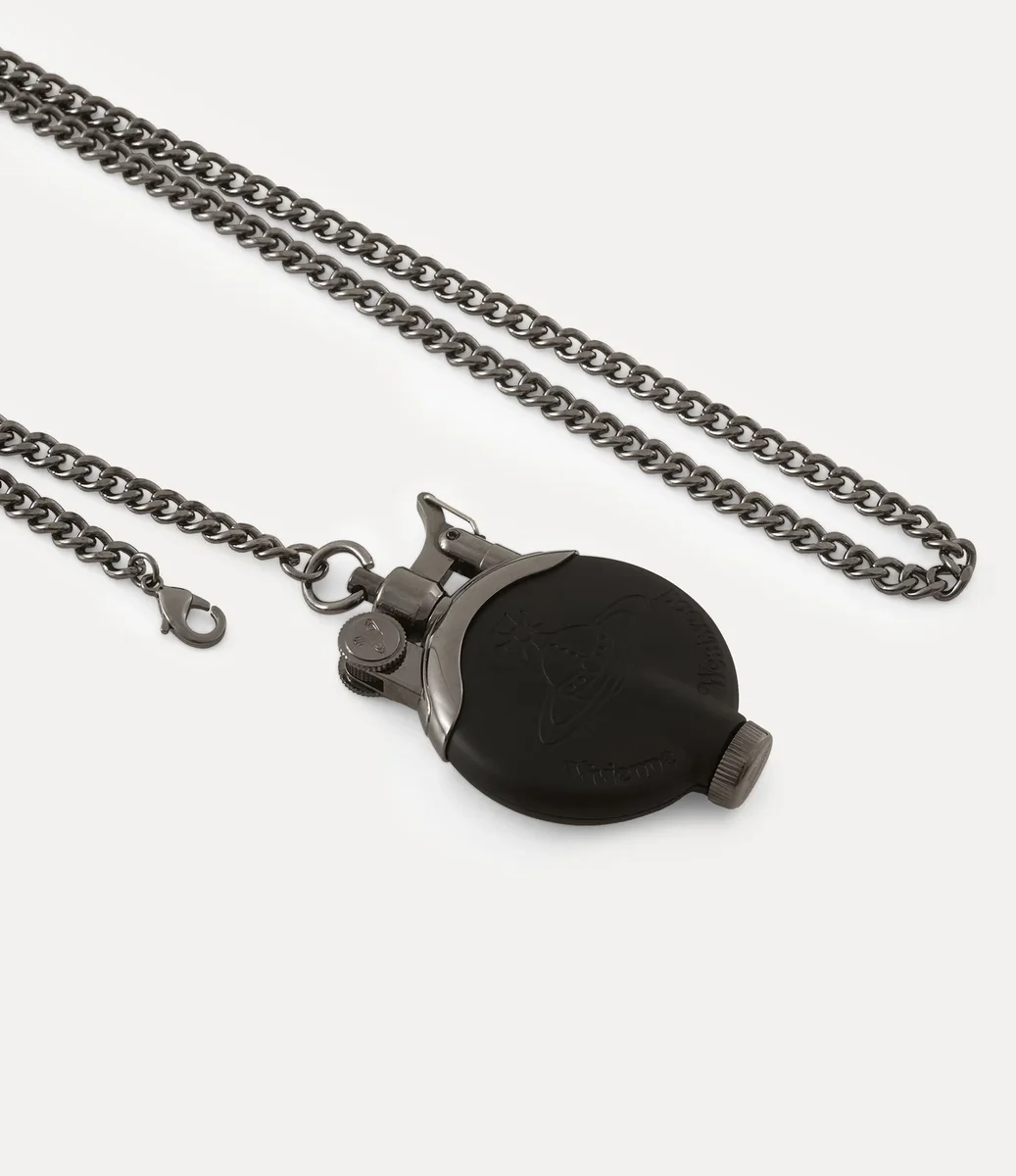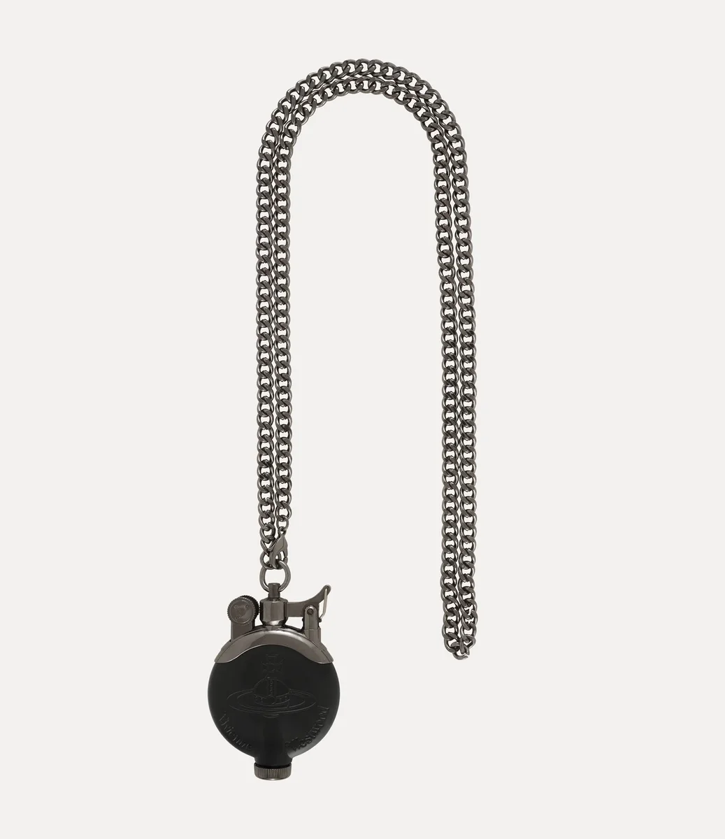 Cette saison, la chaîne Lighter fait son grand retour avec un mélange de finitions argentées et mates. Inspiré des montres victoriennes anciennes, son design circulaire est suspendu à une chaîne à maillons et présente une silhouette de globe gravée sur le devant. Le globe symbolise la tradition, encerclé par les anneaux célestes de Saturne, qui représentent l’avenir.