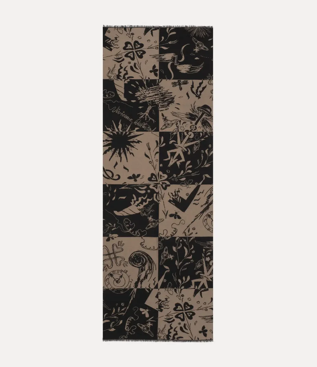 L’étole Checkboard de cette saison s’inspire de la tenue du « Cavalier » dans le tableau Le Cavalier riant de Frans Hals, avec des motifs introduits pour la première fois dans la collection Gold Label printemps-été 2010 « Get a Life ». Confectionnée dans un mélange de laine et de soie, cette pièce est rehaussée du jacquard Orb de la maison.