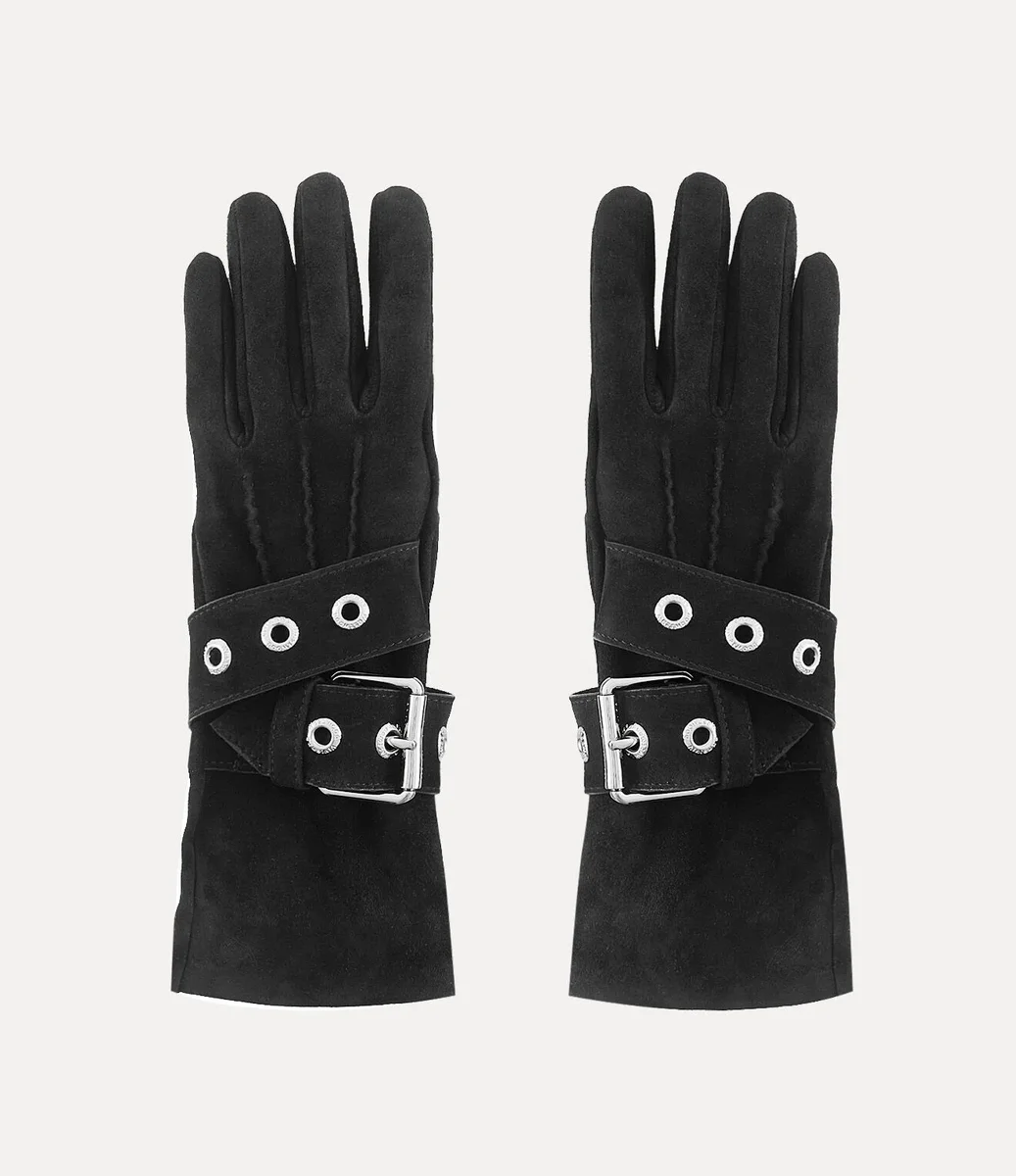 Nos gants Belt Buckle sont confectionnés en cuir suédé souple et dotés d’une manchette allongée qui dépasse le poignet. Inspiré de la ceinture Alex emblématique de la maison, le modèle est orné d’une sangle asymétrique qui s’enroule en diagonale sur chaque gant, avec des finitions en métal argenté gravé.