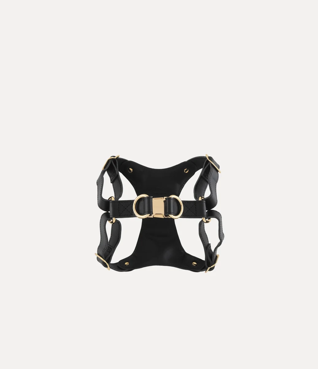 S’inspirant du tissu Steiff issu de la collection automne-hiver 2001 Gold Label « Wild Beauty » des archives de la maison, le harnais pour chien arbore un motif léopard audacieux. Conçu avec une plaque thoracique sculptée et des sangles noires réglables, il est rehaussé d’une finition dorée polie et de l’emblème orbulaire signature au centre.
