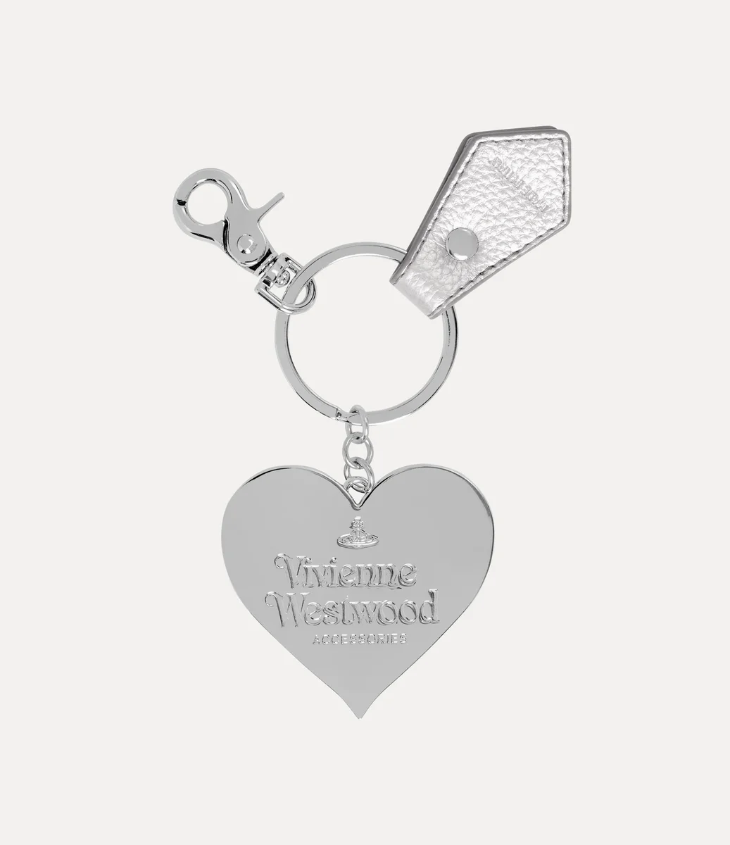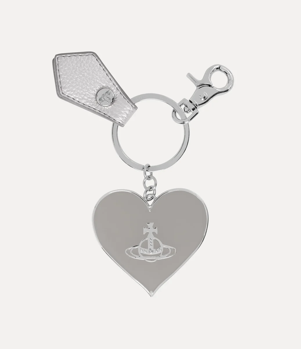 Notre porte-clés Mirror Heart Orb est doté d’un anneau fendu argenté et d’une languette ton sur ton, ainsi que d’un motif cœur suspendu. La pièce est gravée « Vivienne Westwood » au dos, tandis que le devant arbore le motif « Line orb », rappelant la vision de Vivienne qui consiste à propulser la tradition dans le futur.