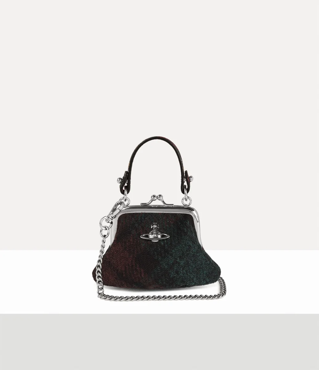 Le mini sac à main Granny Frame est une version plus petite du sac à main Granny Frame emblématique de la maison. Fabriqué en Harris Tweed, tissé à la main par des artisans des Hébrides extérieures écossaises, il présente une silhouette légèrement structurée et notre motif orb multicolore signature, décliné dans une finition tuftée cette saison.