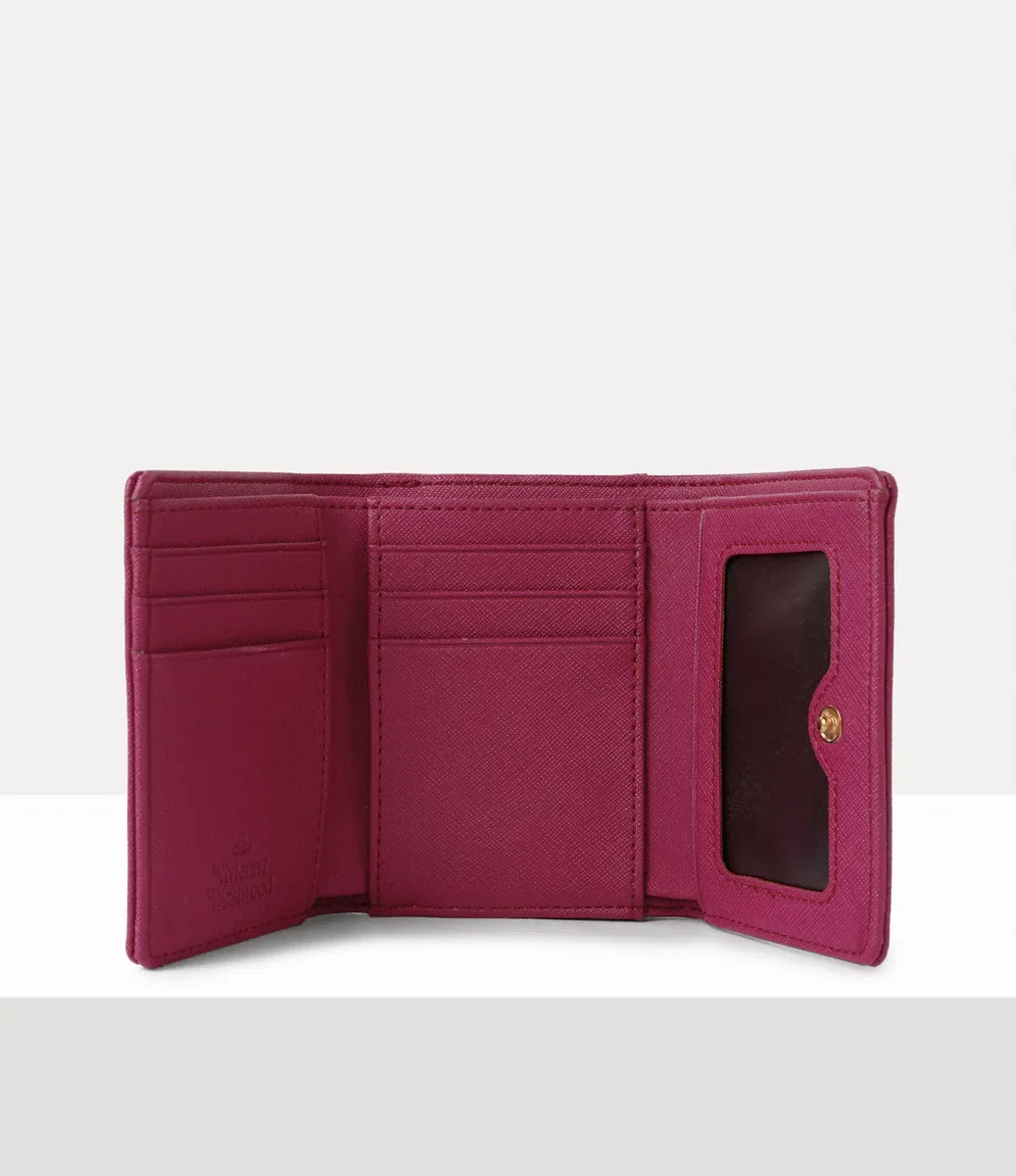 Notre petit portefeuille Small Frame présente un profil classique en cuir PU, avec une finition gaufrée saffiano sur l’ensemble du design. Orné d’un motif orb en bas-relief doré sur le devant, cet article rappelle la vision de Vivienne qui consiste à propulser la tradition dans le futur.