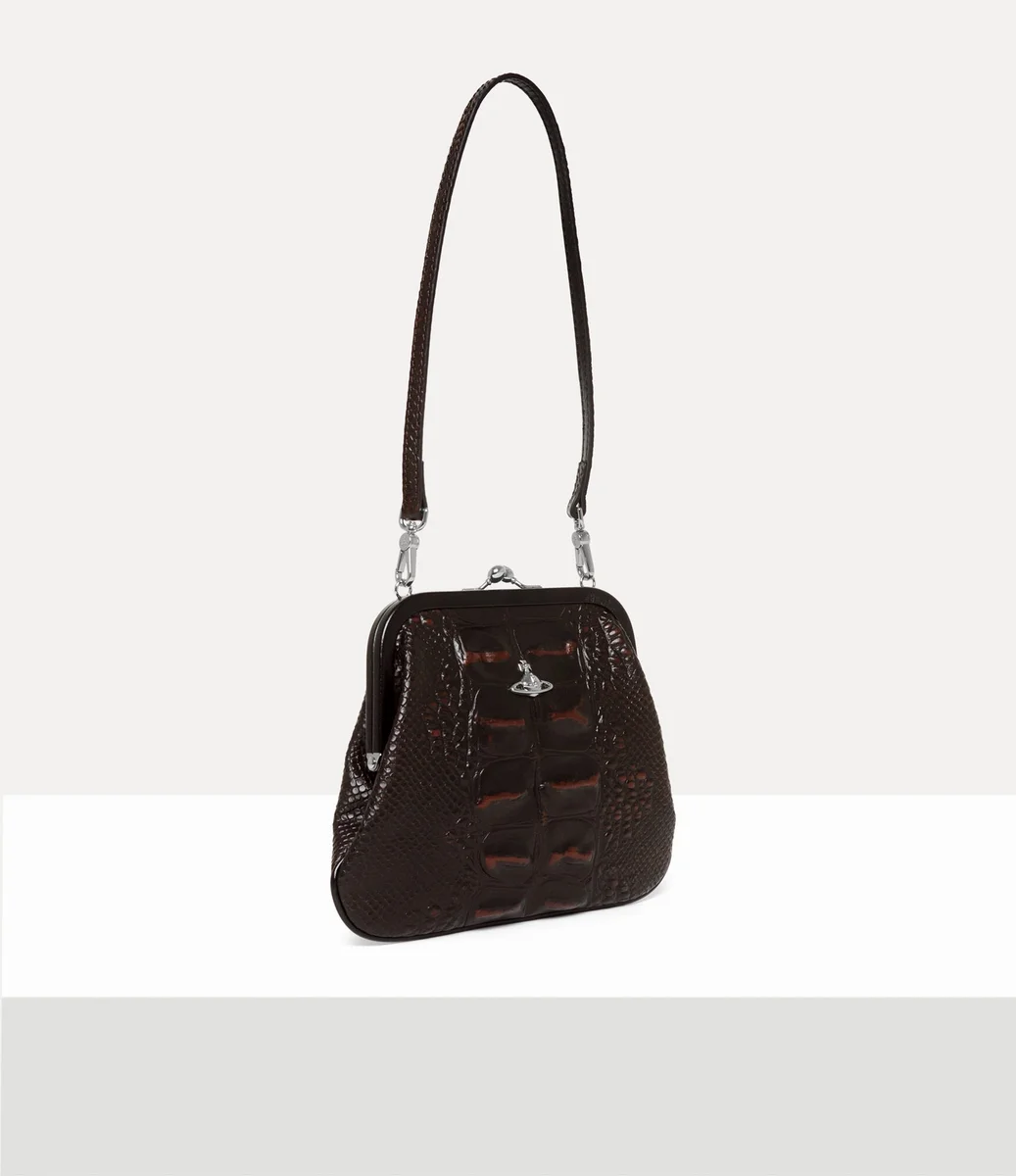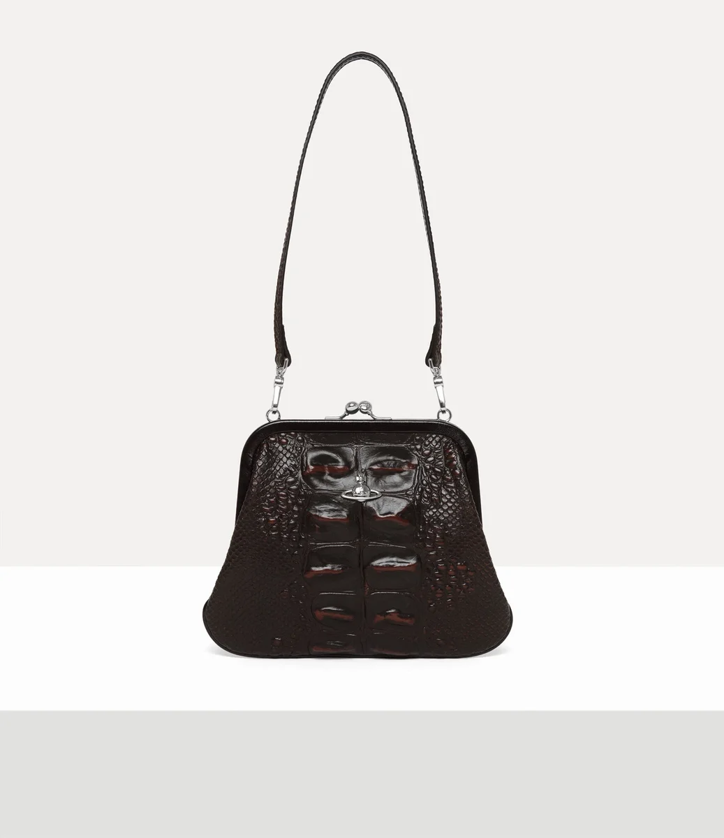 Notre pochette Vivienne, confectionnée en cuir, arbore le motif « Dinosaur » en relief de cette saison, qui évoque les marques texturées de la peau des reptiles préhistoriques. Elle tire son nom de Vivienne, qui affectionnait ce style, et est ornée de notre motif « Line Orb » signature sur le panneau avant.
