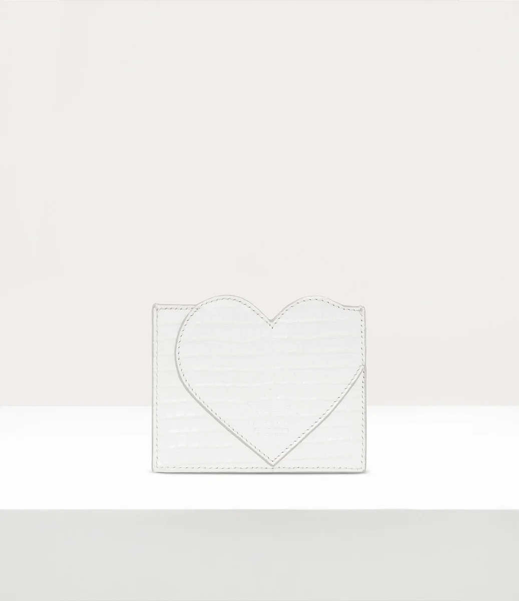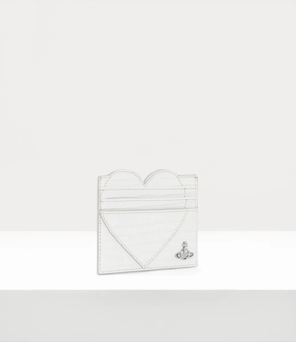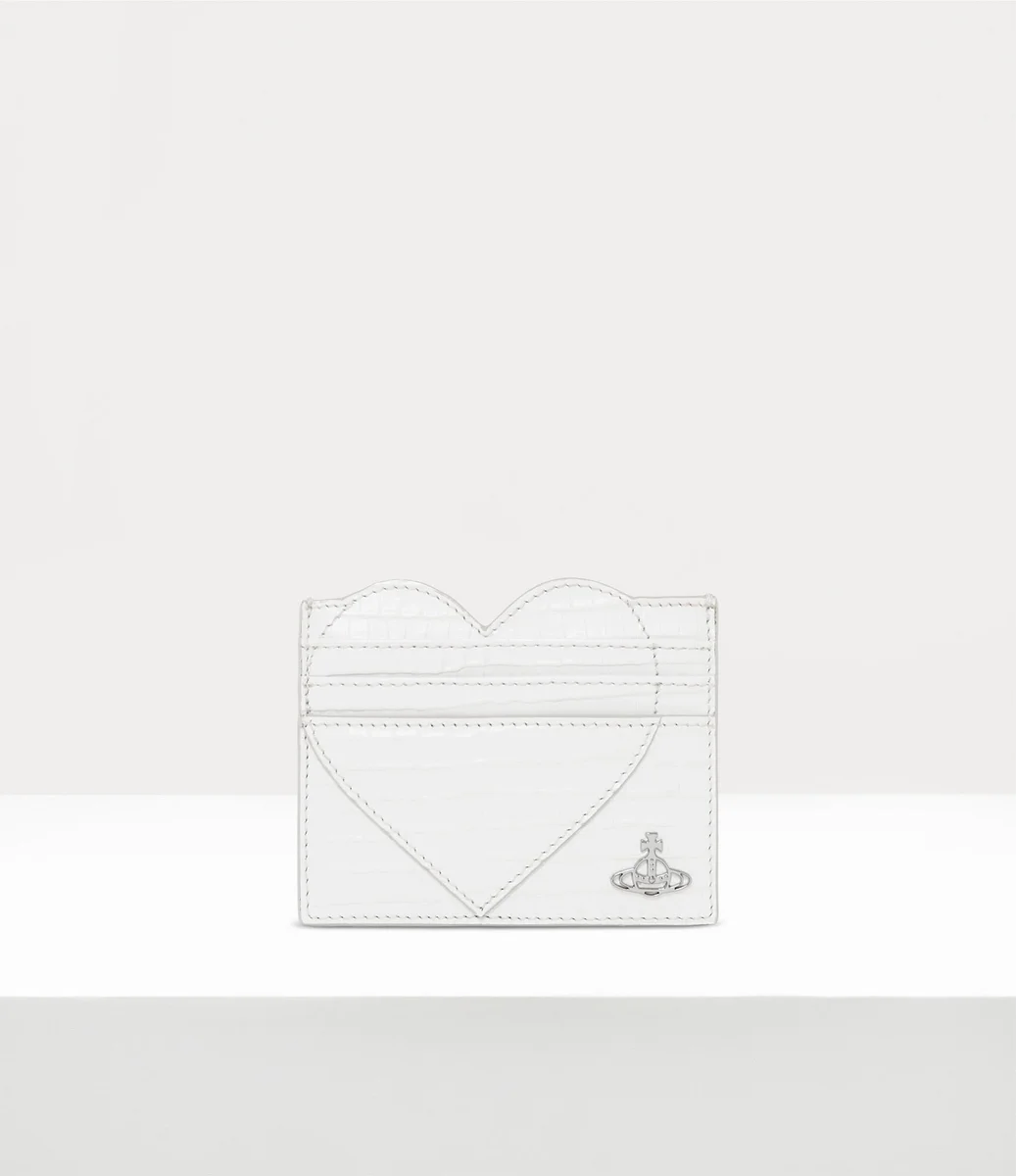 Le porte-cartes Vivienne Westwood Heart en cuir présente une finition gaufrée effet croco, agrémentée du détail asymétrique emblématique en forme de cœur et de l’emblème orb sur le panneau avant.