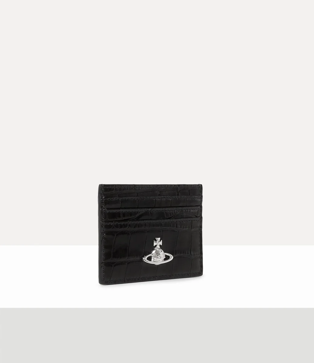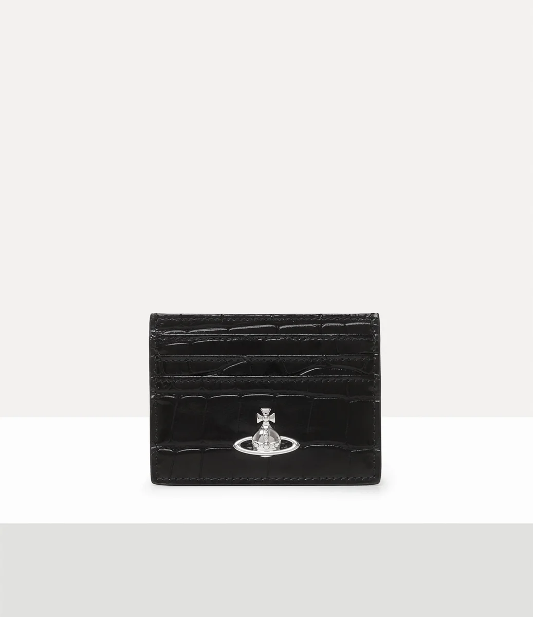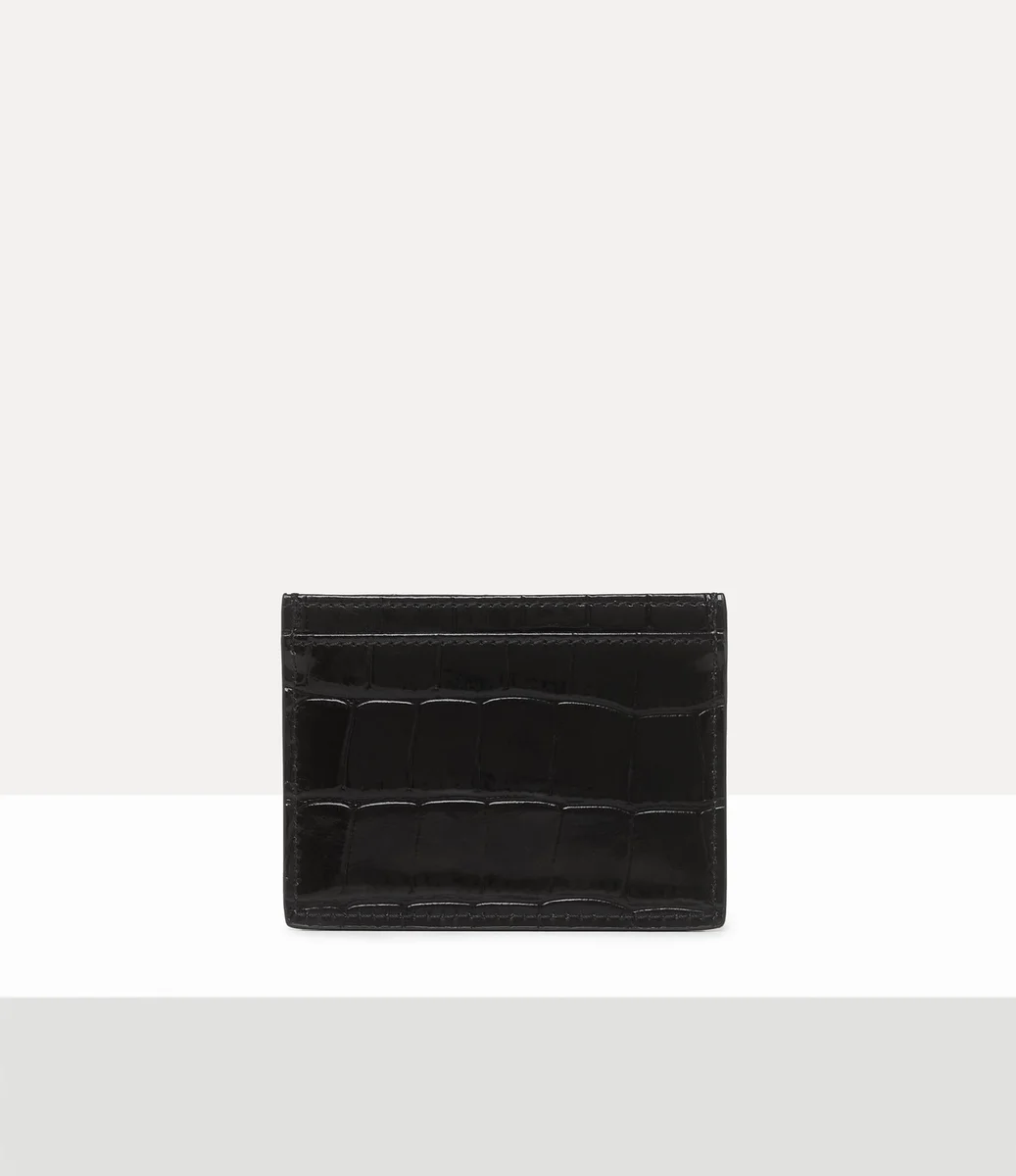 Le porte-cartes plat Vivienne Westwood est confectionné en cuir brillant avec une finition gaufrée effet croco et orné d’un motif orb argenté sur le devant.