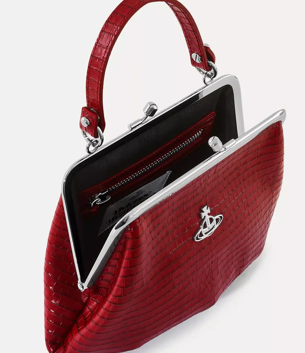Inspiré des populaires porte-monnaie anciens du début du XXe siècle, notre sac à main Granny Frame est doté d’une fermeture à pression polie et d’une structure métallique apparente. Il présente la finition gaufrée « Mini » effet croco de cette saison, agrémentée de détails métalliques classiques.