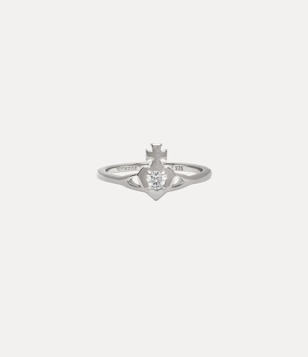 La forme de cœur reste un élément classique de l’iconographie de la maison, rappelant l’affection de Vivienne pour l’humanité et la planète. Notre bague Noella ravive ce motif, avec un placage poli couleur platine et des ornements en cristal blanc.