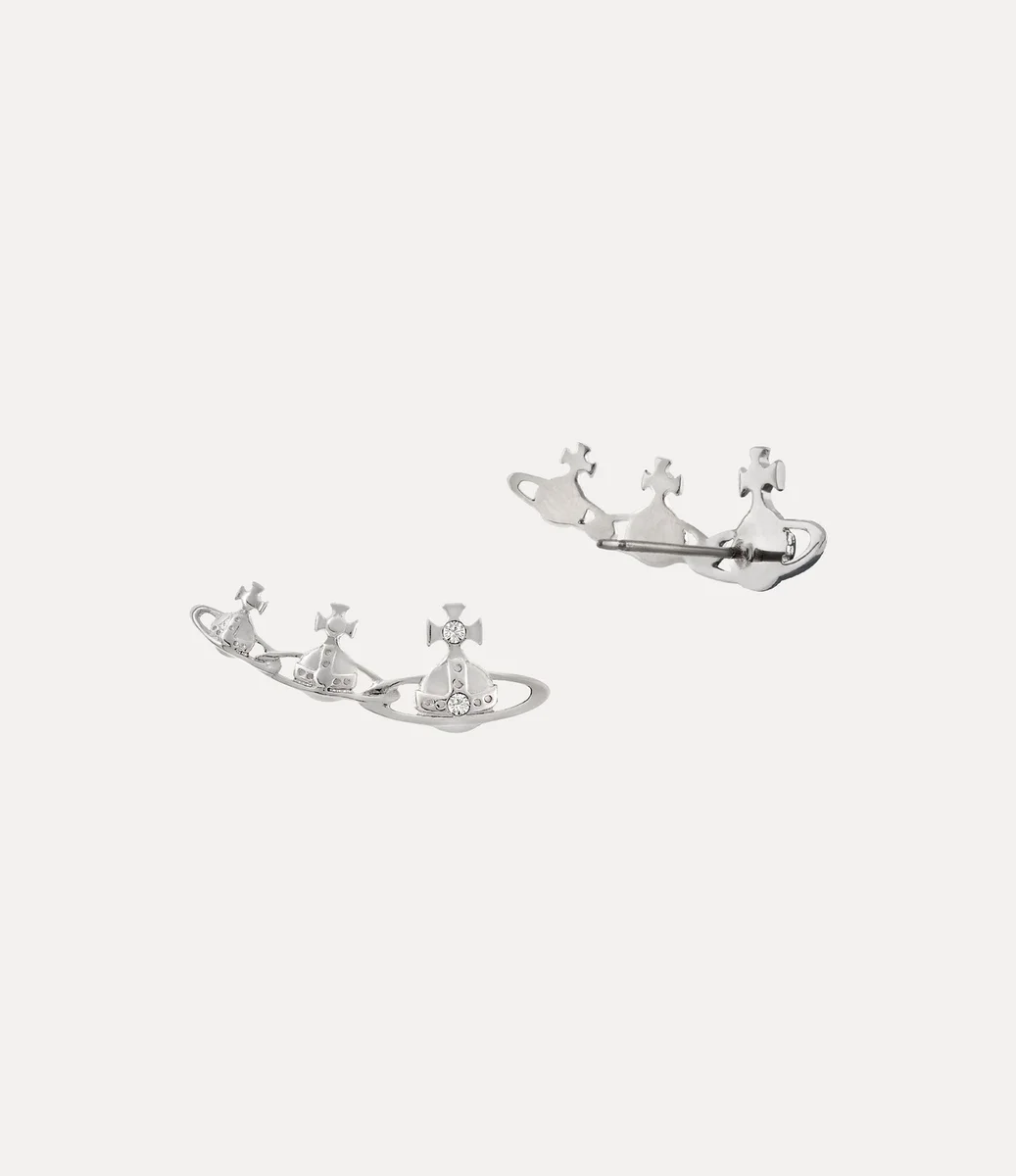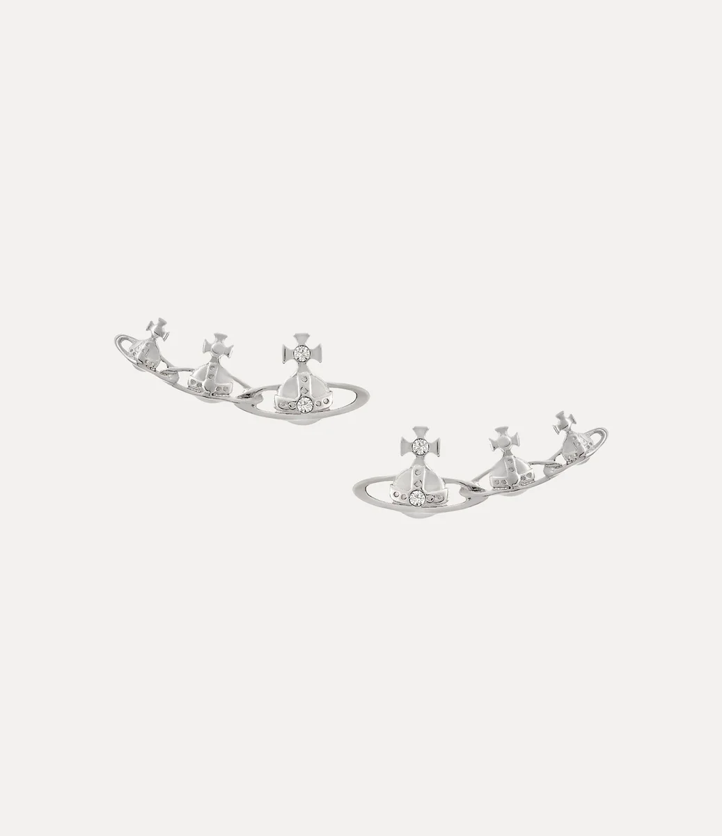 Nos boucles d’oreilles Candy, plaquées argent, s’inspirent du motif orbulaire emblématique de la maison. Le design présente des orbes reliés entre eux, symbolisant la tradition, entourés d’anneaux célestes rappelant Saturne, représentant l’avenir.