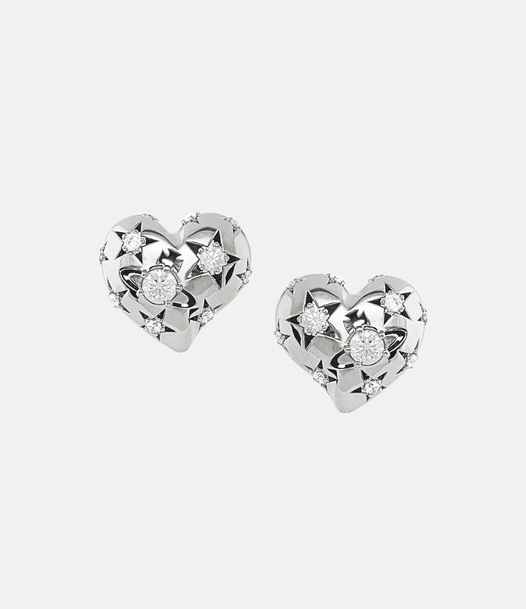 Nos boucles d’oreilles Lee Clip argentées font revivre l’iconographie emblématique de la maison, ornées d’un motif asymétrique classique en forme de cœur. Le design offre un charme céleste, avec des motifs d’étoiles à côté de la silhouette centrale en forme de globe, inspirée de notre motif en forme de globe, rappelant la vision de Vivienne qui consiste à faire entrer la tradition dans le futur.