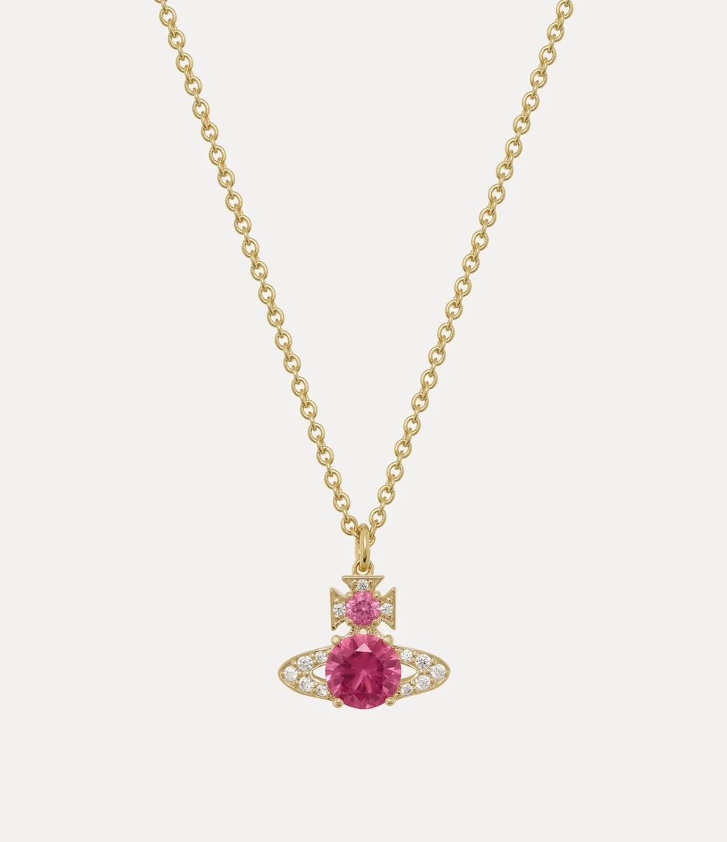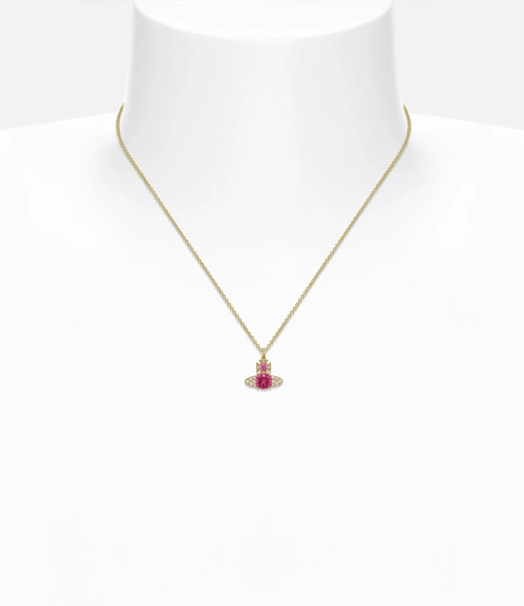 Notre collier pendentif Ismene revient cette saison dans une finition dorée polie, orné de cristaux roses et blancs dans un élégant pavé. Agrémenté de délicates découpes le long des anneaux de Saturne, le design est complété par une étiquette ovale, gravée de notre lettrage au niveau du fermoir mousqueton.
