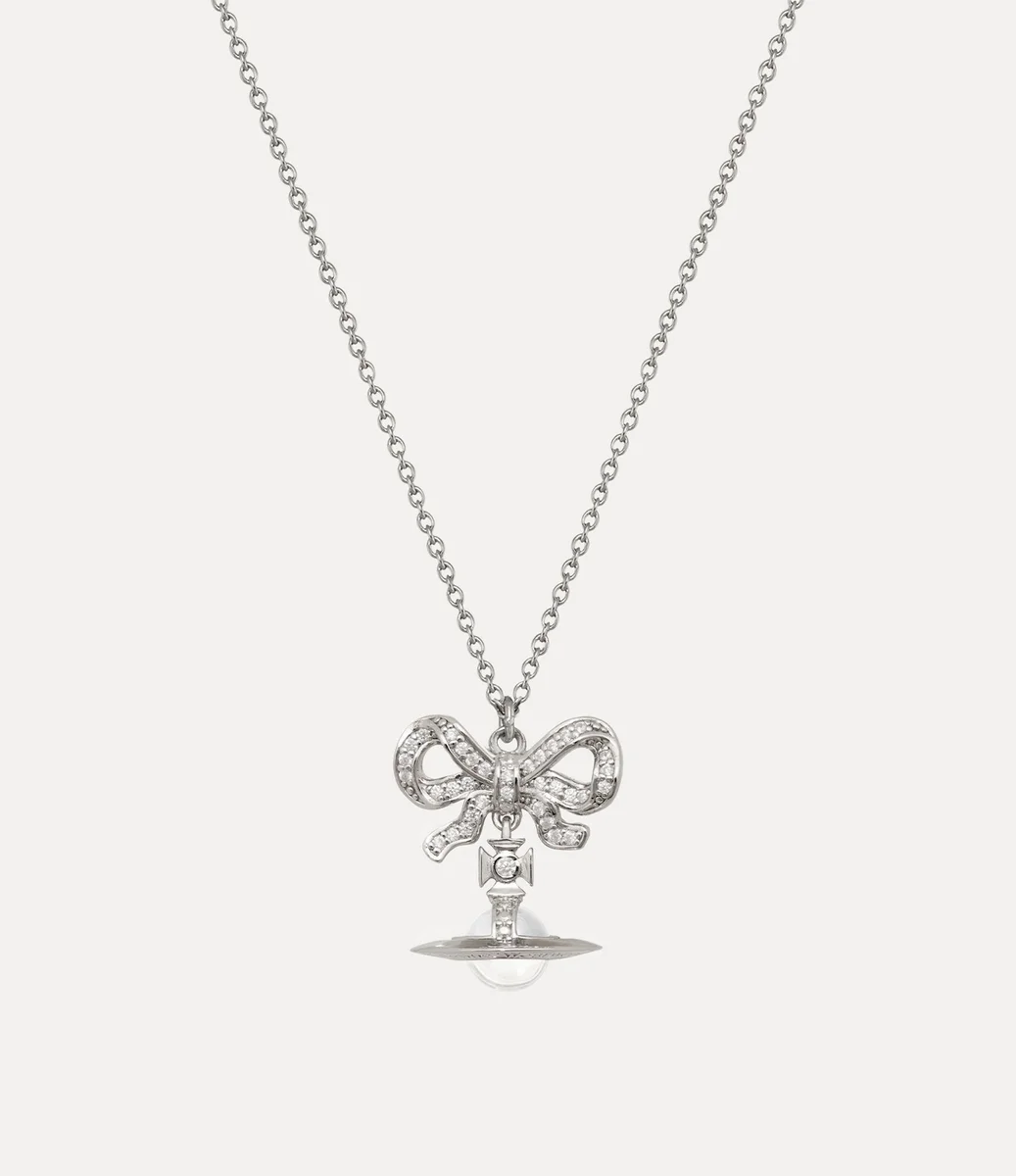 Notre collier Octavie Pendant est fabriqué à partir d’argent recyclé et fini avec un placage poli ton platine. Orné de cristaux blancs étincelants, le design combine un nœud de style géorgien avec notre globe tridimensionnel signature au centre, faisant écho au motif globe classique de la maison.