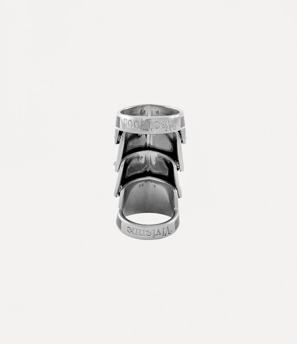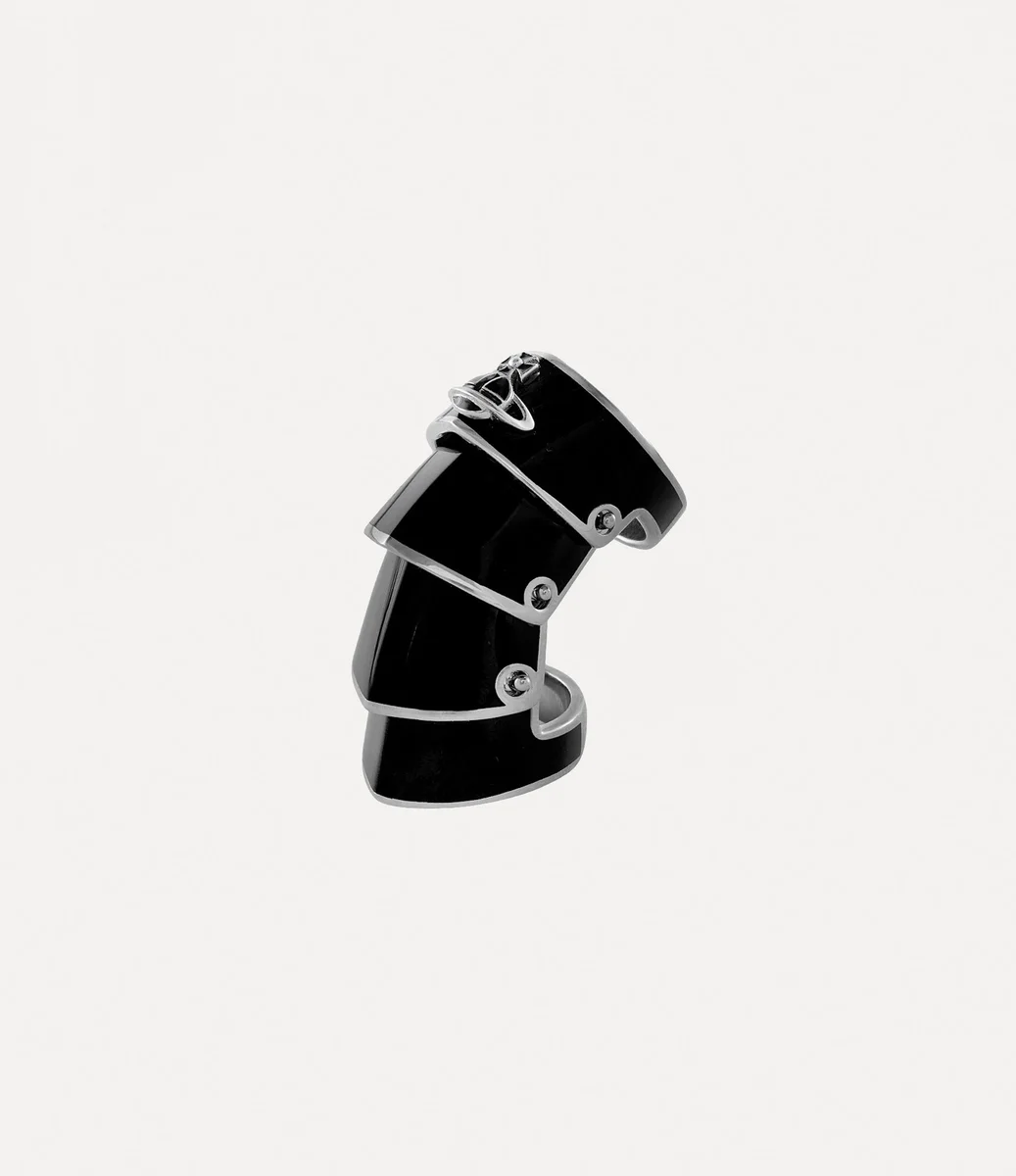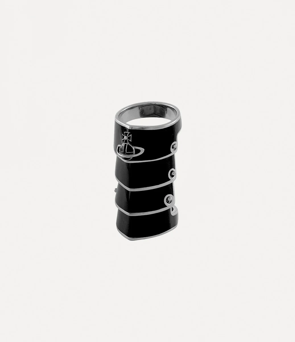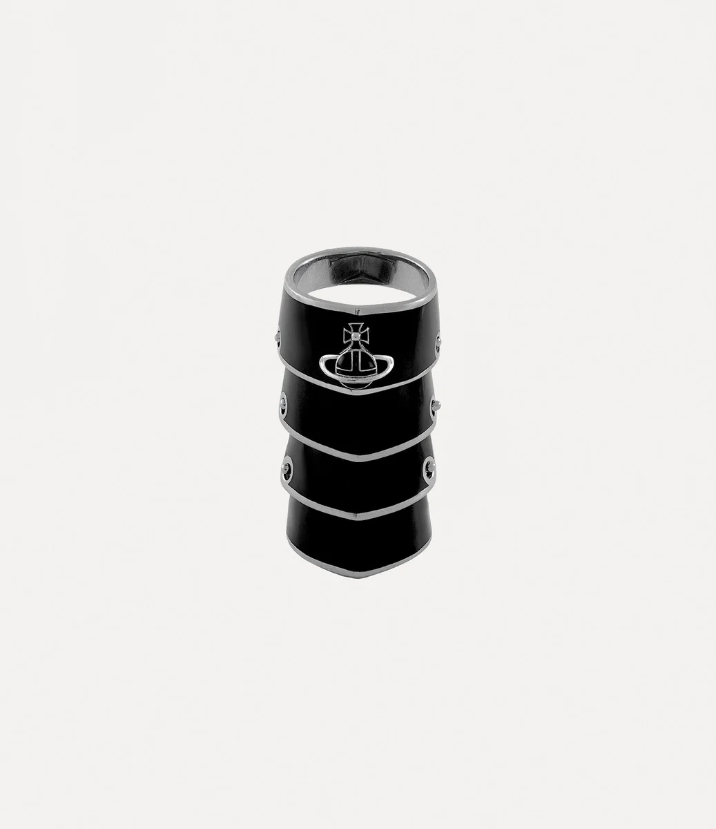 La bague Artemis s’inspire du design des vestes inspirées des armures de la collection « Time Machine » de Vivienne Westwood de 1988, reflétant la profonde fascination de Vivienne pour la Wallace Collection. La pièce se compose de sections en émail peint à la main qui se chevauchent, ornées de notre motif orbulaire signature, incarnant la philosophie qui consiste à faire passer le passé dans le futur.