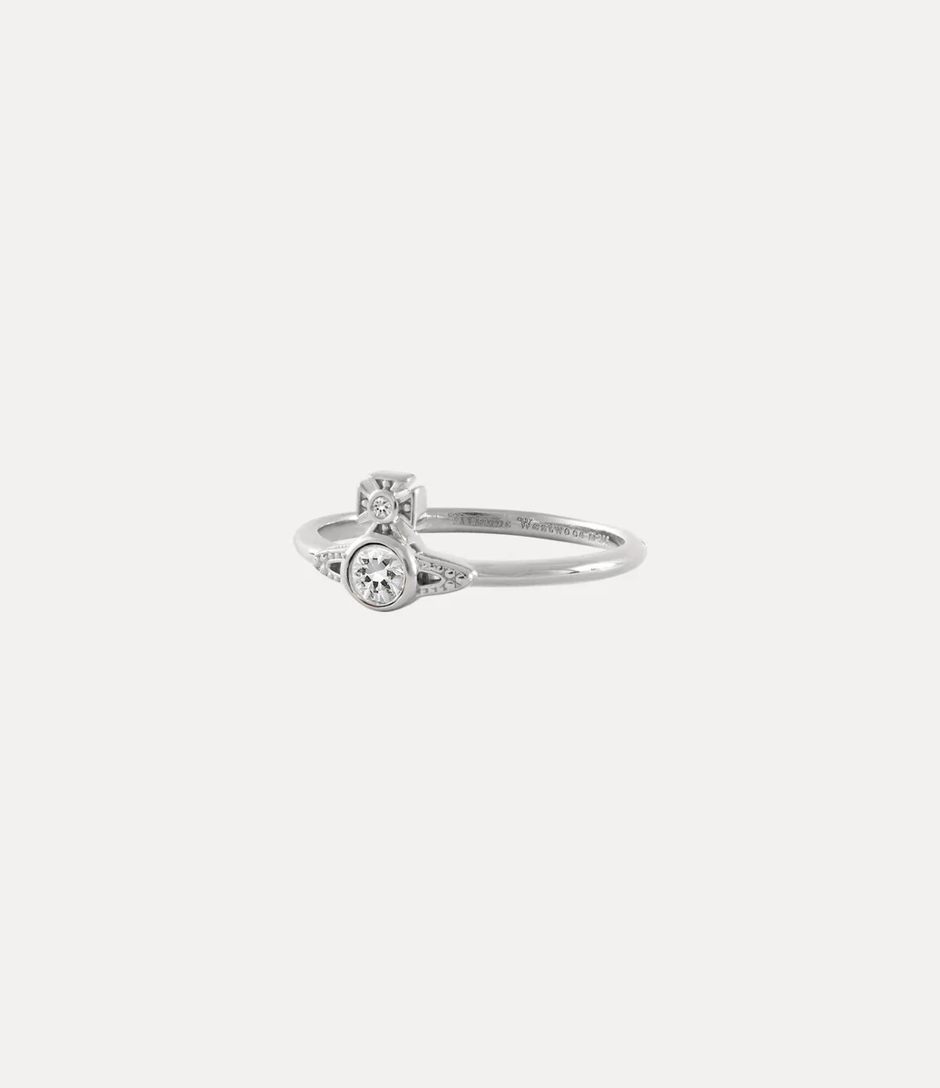 Notre bague London Orb en argent recyclé présente un anneau délicat qui converge vers la pièce centrale en forme d’orbe, rappelant la vision de Vivienne qui consiste à propulser la tradition dans le futur. La bague Saturn est rehaussée de détails raffinés et agrémentée de cristaux blancs.