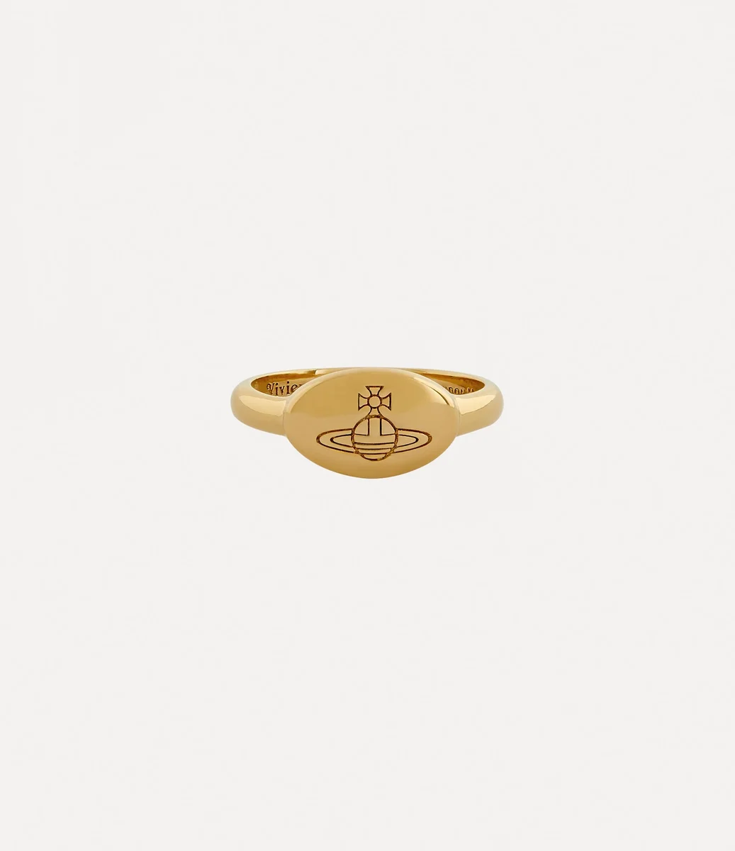 Notre bague Tilly présente une silhouette classique en forme de chevalière, avec une finition en argent recyclé rehaussée d’un placage doré. Cette bague Vivienne Westwood est ornée d’une face ovale, sur laquelle est gravée notre ligne Orb signature, enrichie d’une patine qui rehausse l’esthétique générale, rappelant la vision de Vivienne qui consiste à propulser la tradition dans le futur.