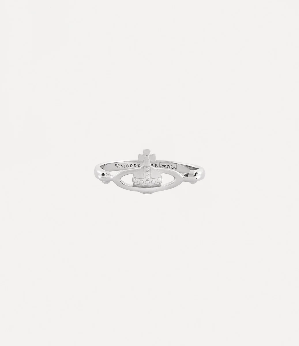 Notre bague Vendome en argent plaqué platine présente un délicat motif à bandes, complété par un motif sphérique découpé sur la face qui peut pivoter sur ses charnières, symbole de la vision de Vivienne qui consiste à faire entrer la tradition dans le futur. Pour finir, la pièce est gravée du motif typographique signature de notre maison à l’intérieur.