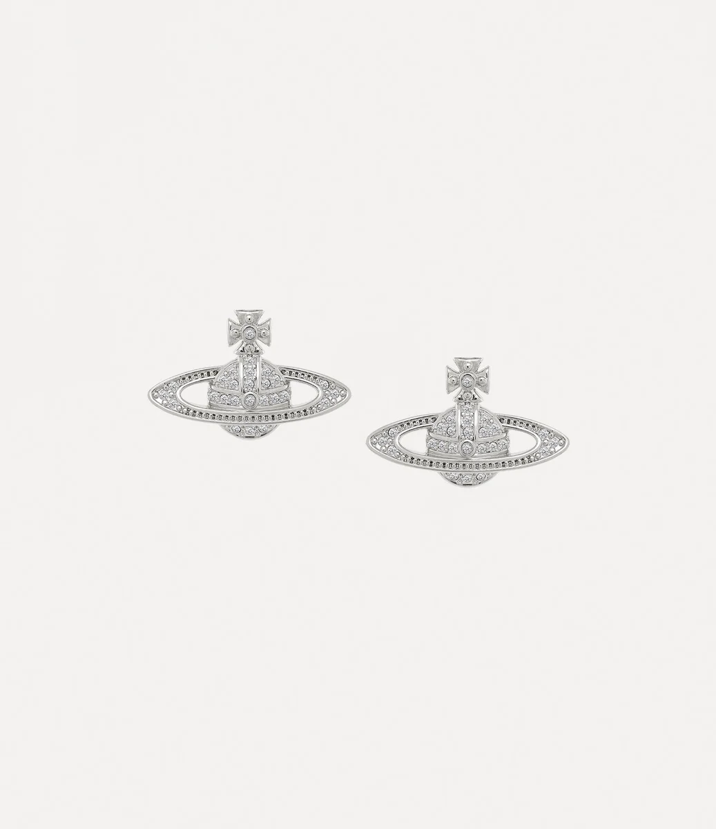 Cette saison, nos boucles d’oreilles Mini Bas Relief présentent la silhouette classique d’un globe, élégamment soulignée par des cristaux scintillants et finie par un placage argenté poli. Agrémenté de découpes complexes autour des anneaux de Saturne, le design reflète la vision de Vivienne, qui consiste à transposer la tradition dans le futur.