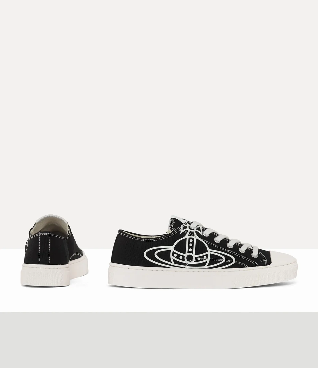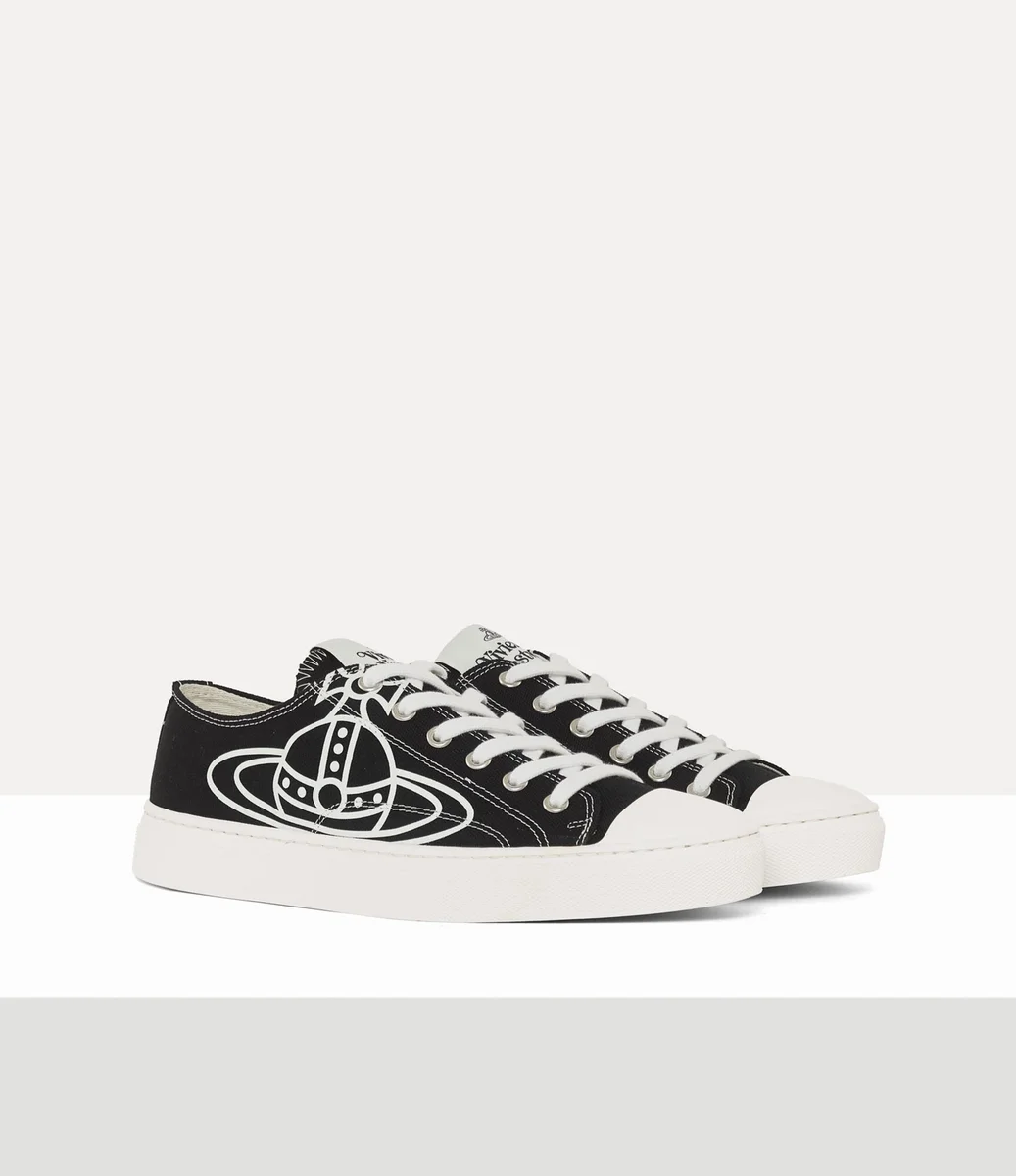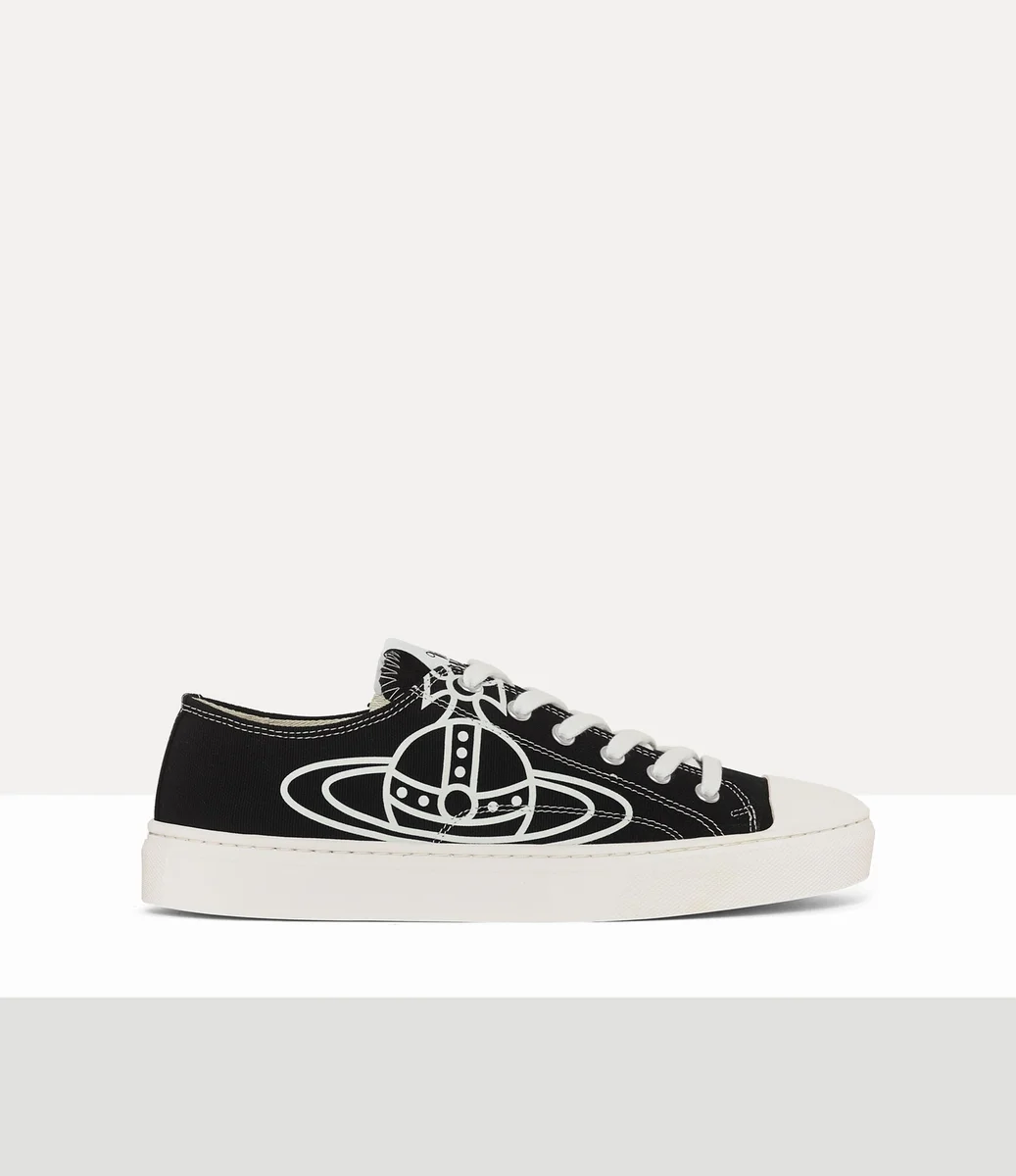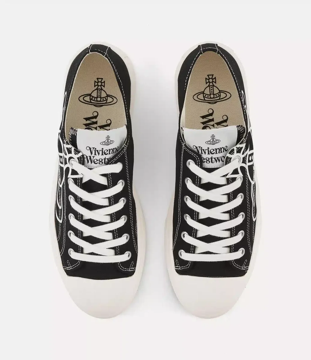 Nos baskets basses en toile arborent le motif « Line Orb » issu des archives de la maison, synonyme de la vision de Vivienne qui consiste à propulser la tradition vers l’avenir. Ce modèle est confectionné en toile de coton et orné d’une étiquette tissée sur la languette.
