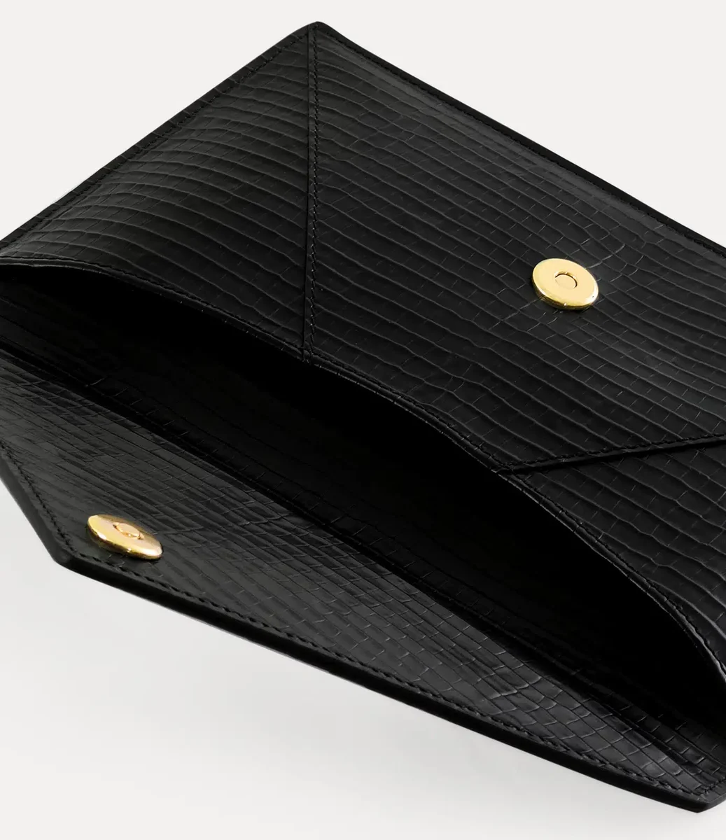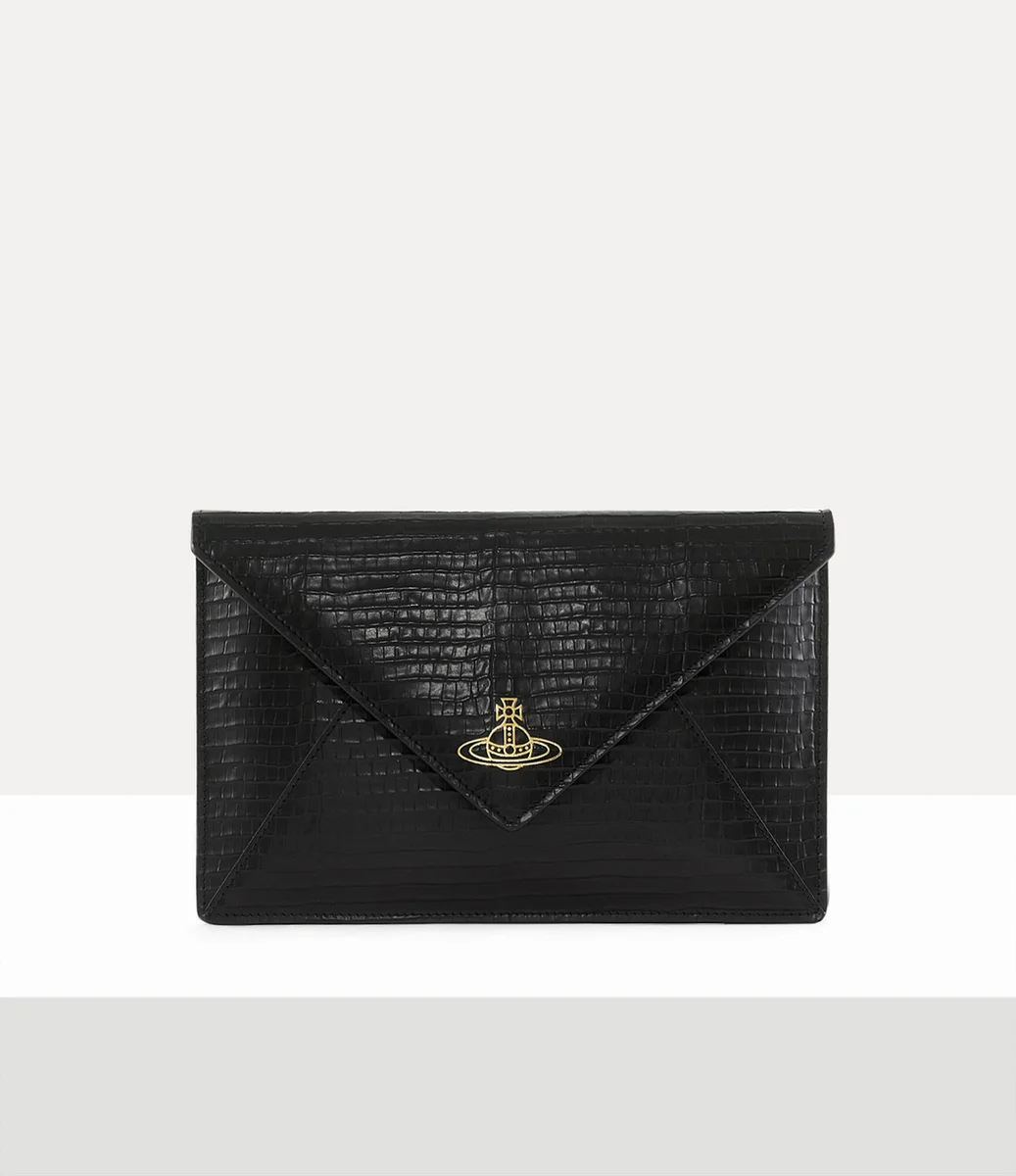 Cette saison, notre pochette Envelope est réinventée dans un cuir subtil à effet croco mini, avec le motif Orb signature sur la fermeture. Rehaussé d’un délicat gaufrage doré, le design s’inspire des plateaux de table en cuir antique et des boîtes à bijoux vintage.