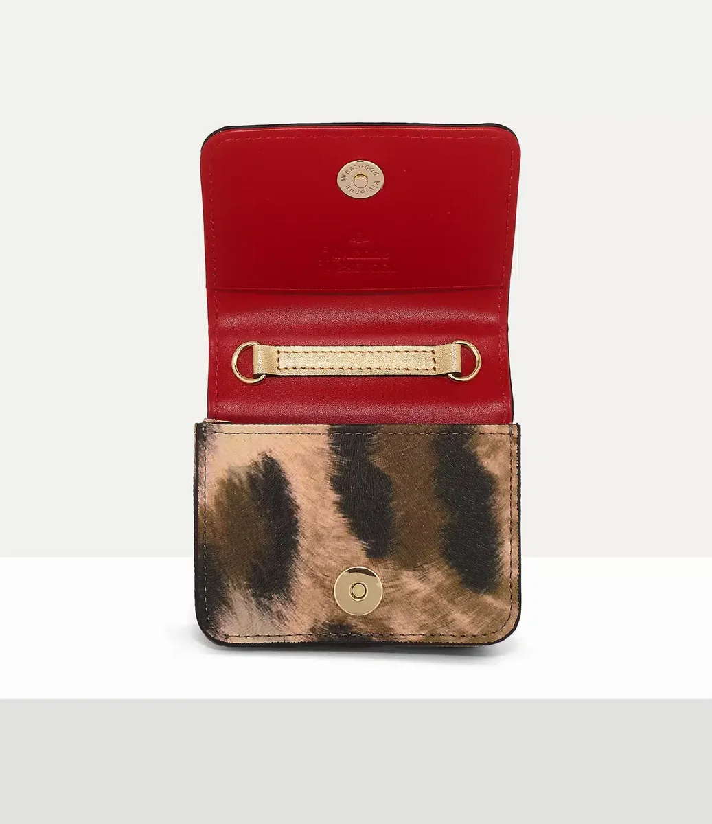 Rappelant la collection Gold Label Automne-Hiver 2001 « Wild Beauty », emblématique de la maison, le sac à bandoulière Mini Flap est orné d’un motif léopard audacieux, réinterprétant le tissu Steiff luxueux utilisé à l’origine dans la gamme. La silhouette rectangulaire structurée est suspendue à une bandoulière en chaîne dorée polie, rehaussée du slogan « Wild Beauty » imprimé et de l’emblème orb signature.