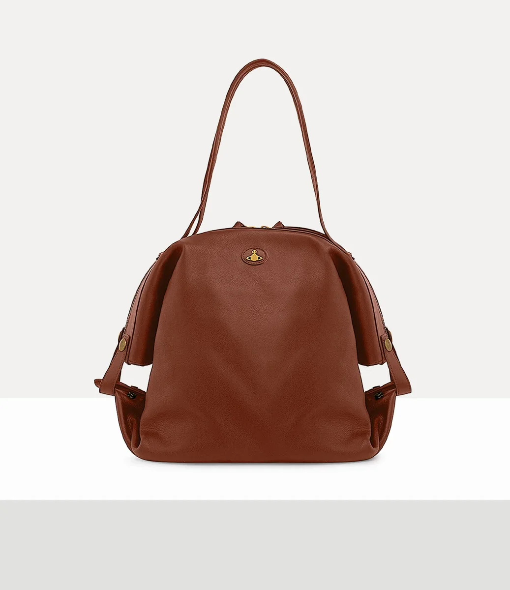 Notre grand sac de voyage Mara est confectionné en cuir souple et présente un design d’archive, vu pour la première fois dans la collection « On Liberty » de Vivienne Westwood. Nommé d’après la mère d’Andreas Kronthaler, il arbore notre logo « Silhouette Orb » rehaussé.