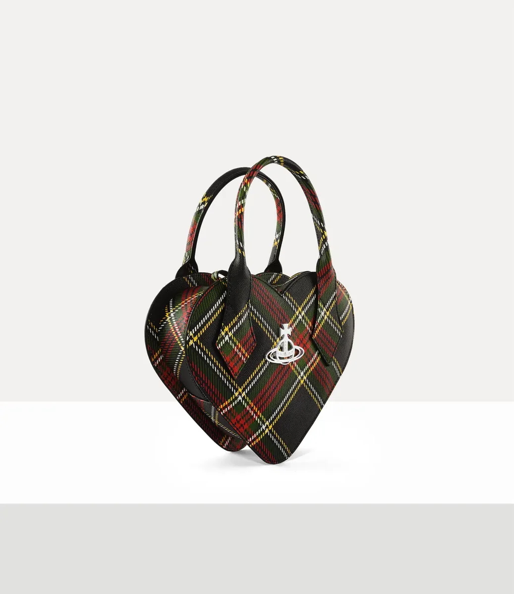 Notre sac à bandoulière Josephine Heart reprend la forme emblématique du cœur de la maison dans le cuir PU de cette saison, imprimé du tartan « Chelsea ». Avec ses teintes vives et ses finitions classiques, il est rehaussé d’une boule en métal poli sur le devant, tandis que l’intérieur est doublé du motif Union Jack signature, en hommage à la collection automne-hiver 2002 « Anglophilia ».