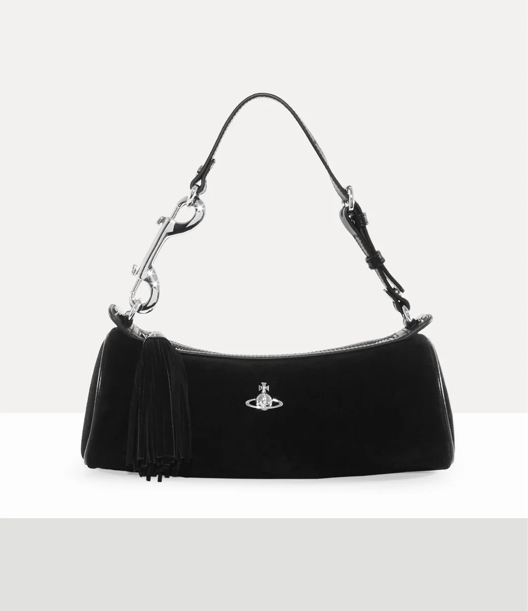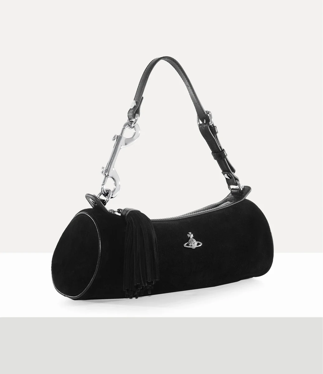 Le sac Cindy Cylinder de Vivienne Westwood est confectionné en cuir suédé souple et orné du globe en bas-relief emblématique de la marque sur le devant.