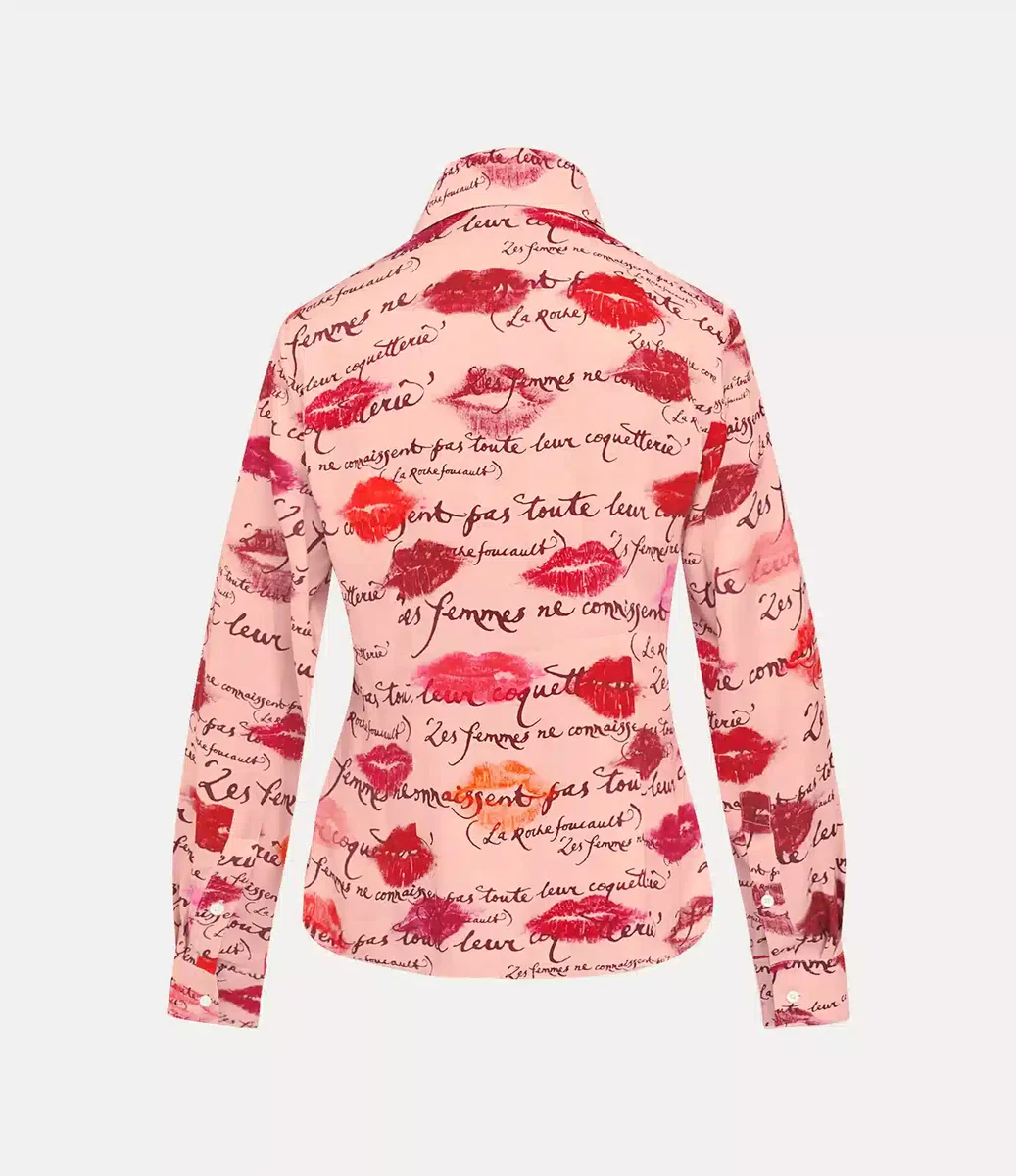 Notre chemise de smoking Violin présente le col à deux boutons emblématique de la maison, orné de l’illustration « Kisses », inspirée du packaging de notre parfum « Boudoir ». Cette pièce présente un col pointu exagéré, rehaussé de délicates pinces au niveau de la poitrine et de la taille pour une silhouette sculptée et profilée.