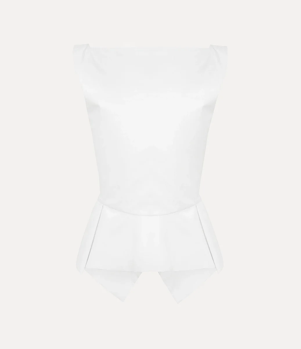 Notre gilet Monday reprend une silhouette d’archive, présentée pour la première fois dans la collection printemps-été 1997, « Viva la Bagatelle ». Cette pièce présente un décolleté carré classique et tombe en douceur sur un ourlet évasé à volants qui se rassemble en plis délicats et en un design en V inversé sur le devant.