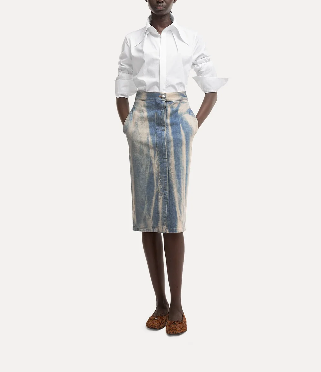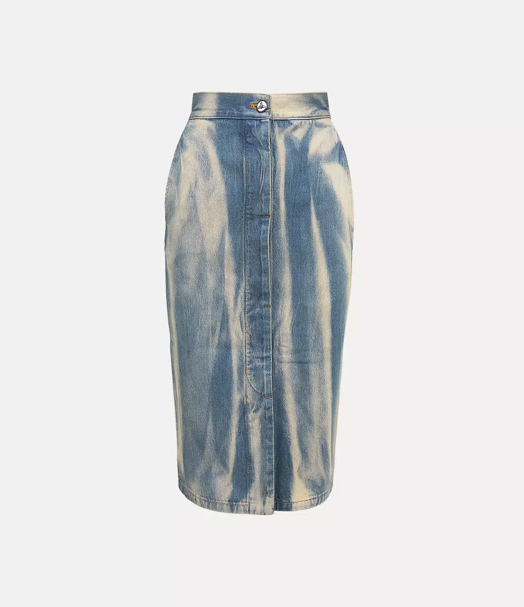 Notre jupe-culotte est confectionnée en coton et ornée d’un délavage décoloré pour un look vintage et usé. Dotée d’une taille haute qui se ferme à l’aide d’un bouton-pression en denim orné d’une perle, cette pièce présente une longueur midi.