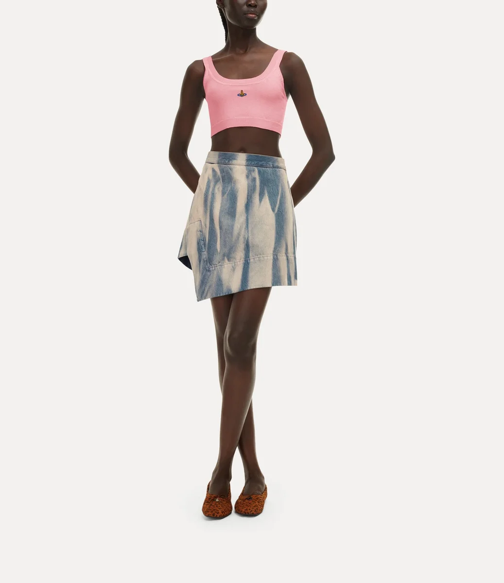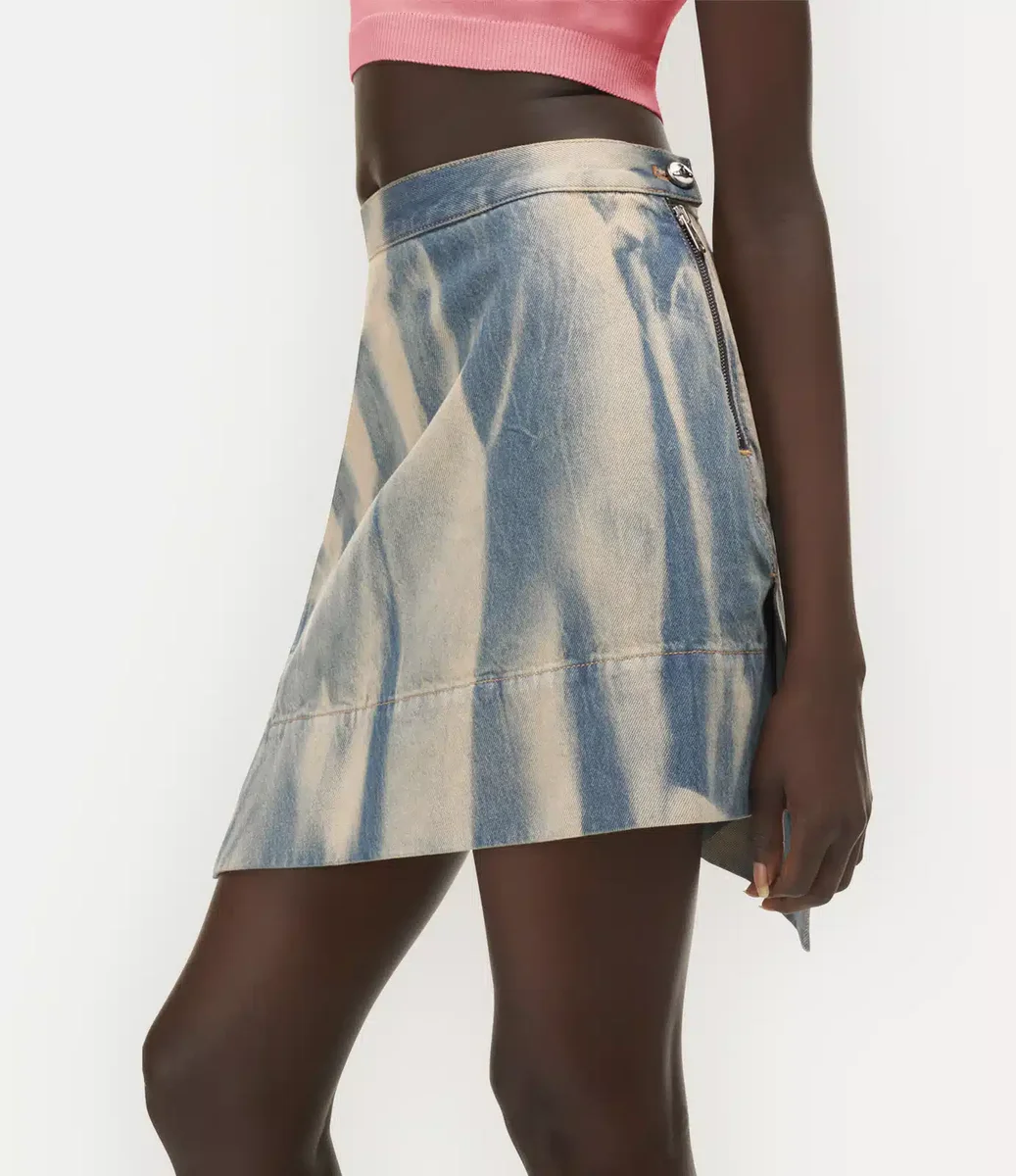 Notre jupe Mini Infinity est confectionnée dans un coton doux et ornée d’un délavage décoloré pour un look vintage et usé. Elle présente un devant croisé qui se ferme à l’aide d’un bouton dissimulé, ainsi qu’une taille mi-haute qui tombe en A asymétrique.
