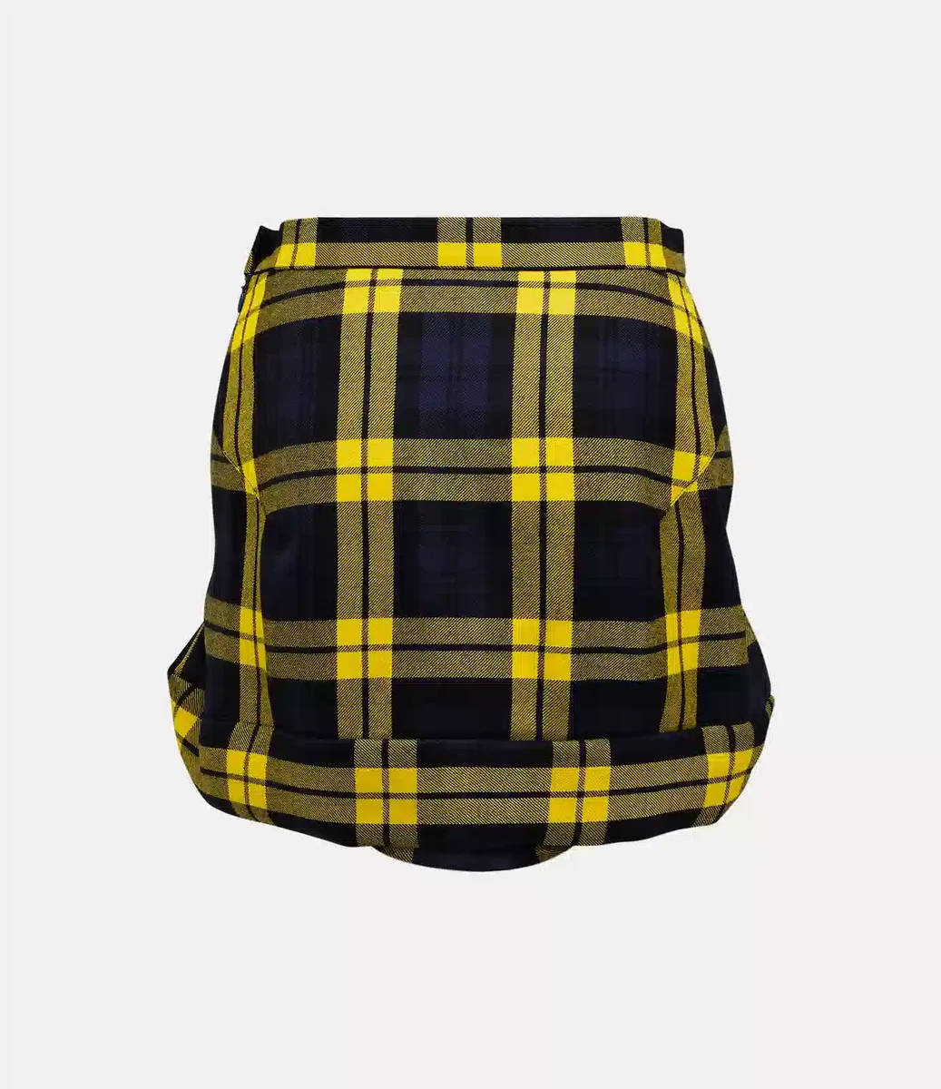 Notre jupe Mini Double Frame est proposée cette saison dans le motif tartan « Moonshine », avec des teintes vives et des boutons gravés de couleur ambre. Ce modèle présente le système de coupe « Double Frame » de la maison, avec des découpes délicatement incurvées au niveau de l’ourlet.