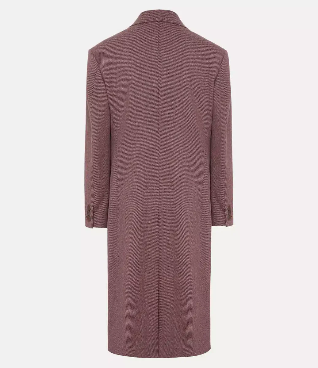 Notre manteau Winston présente un profil en laine texturée, avec un tissage diagonal en sergé dans un ton bordeaux discret. Il est doté d’une fermeture à double boutonnage sur le devant avec de larges revers en pointe, et se ferme à l’aide de boutons sécurisés.