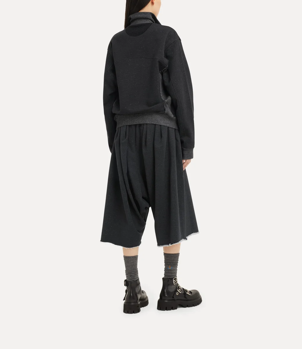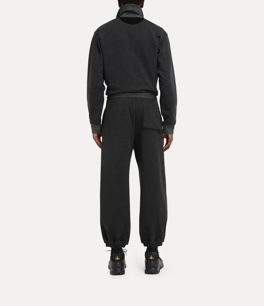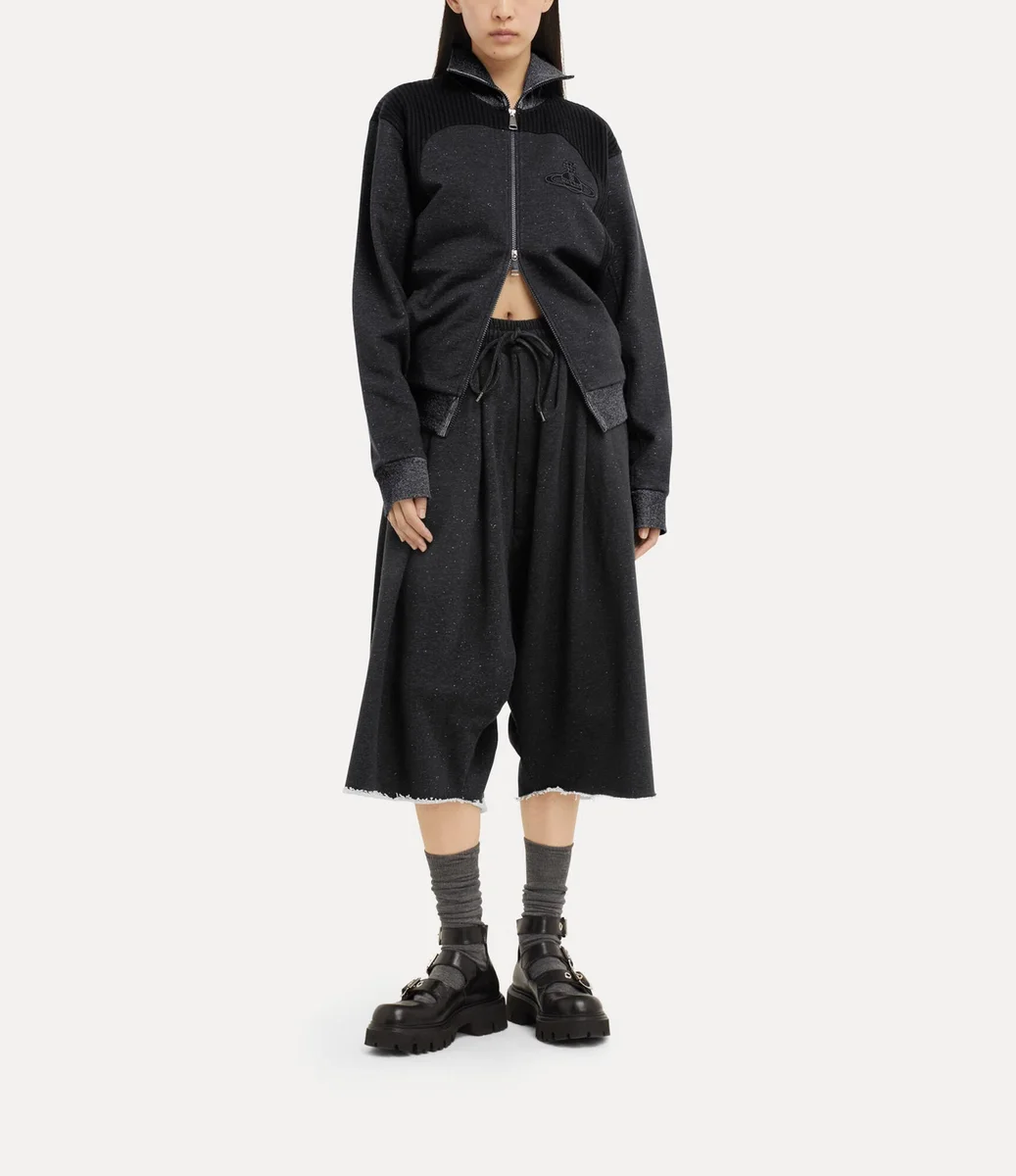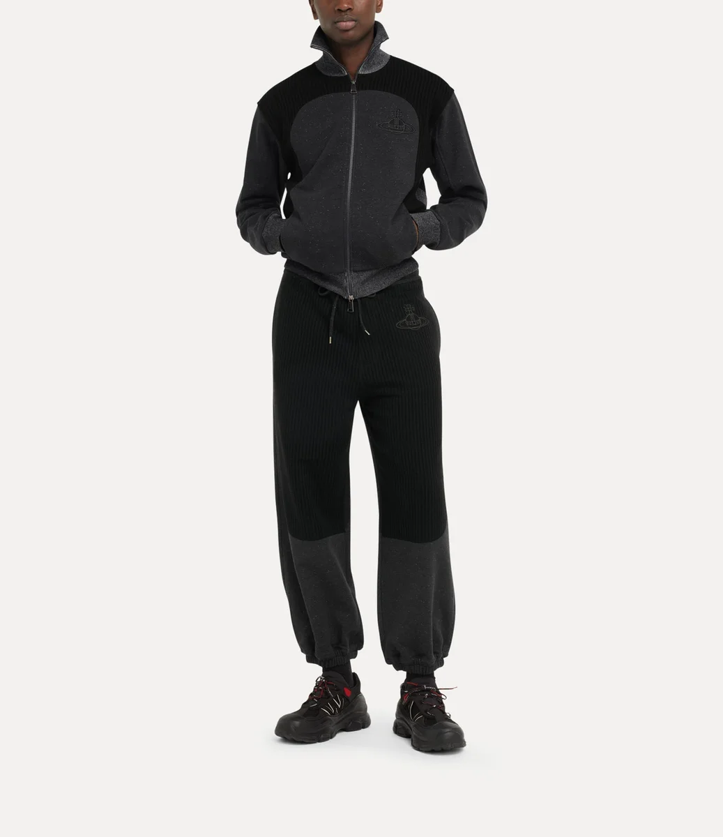La veste Alien Track de cette saison réintroduit la fermeture à glissière à double sens, un détail utilisé pour la première fois par Vivienne Westwood à la fin des années 1970 et au début des années 1980 comme symbole de non-conformisme et marque de fabrique de son esthétique punk rebelle. Dotée d’un col montant et de panneaux côtelés, cette pièce est rehaussée du motif Graffiti orb de la maison, subtilement brodé sur la poitrine avec un fil ton sur ton.