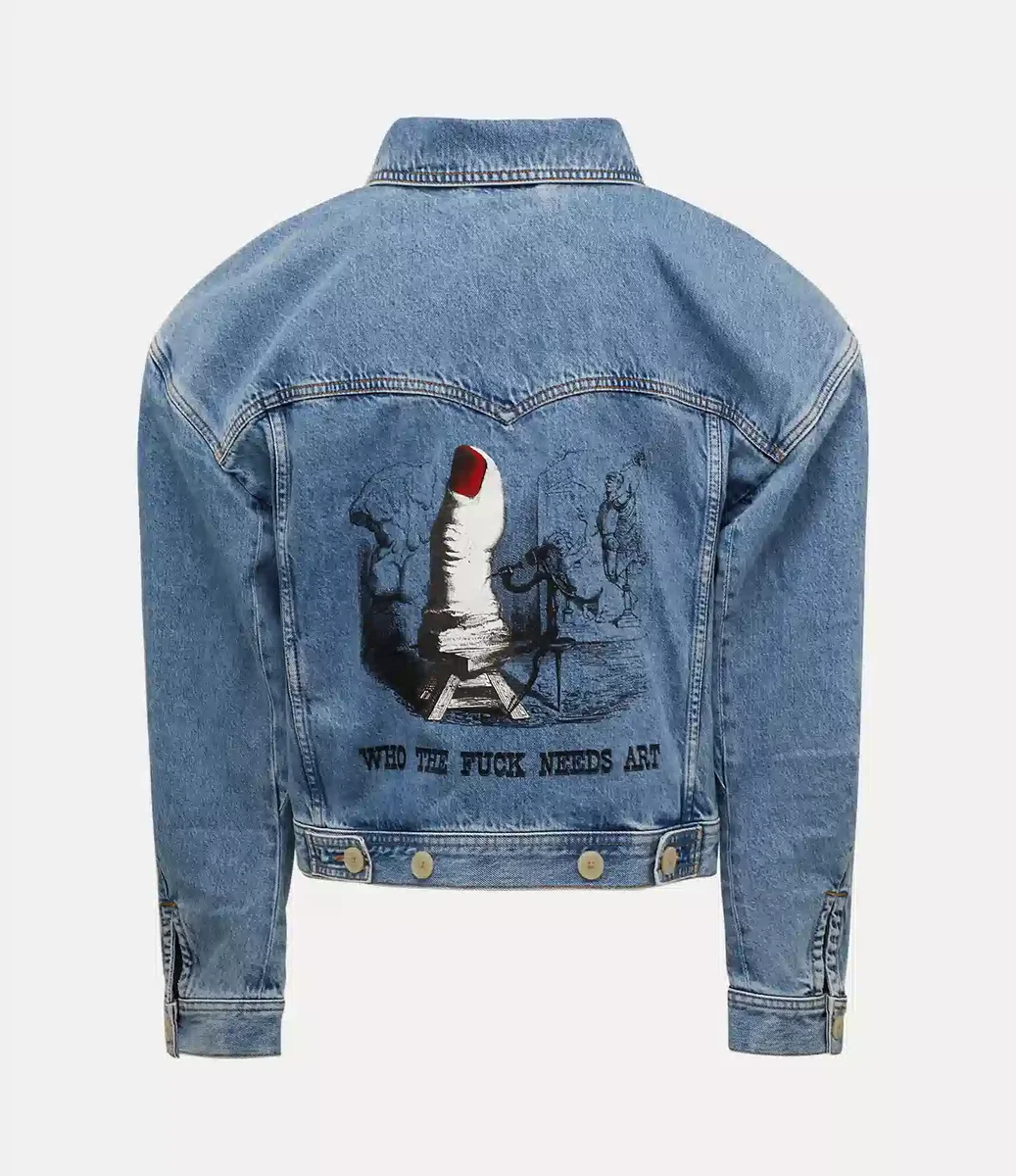 Notre veste boxer Worlds End Denim présente une silhouette d’inspiration athlétique avec des poches oversize et des coutures d’épaules abaissées. Le dos du modèle est imprimé du slogan « Who the Fuck Needs Art » issu des archives de la maison, tiré de la collection « Propaganda » printemps-été 2006 de Vivienne Westwood, reflétant ses racines punk et son engagement à remettre en question les conventions politiques.