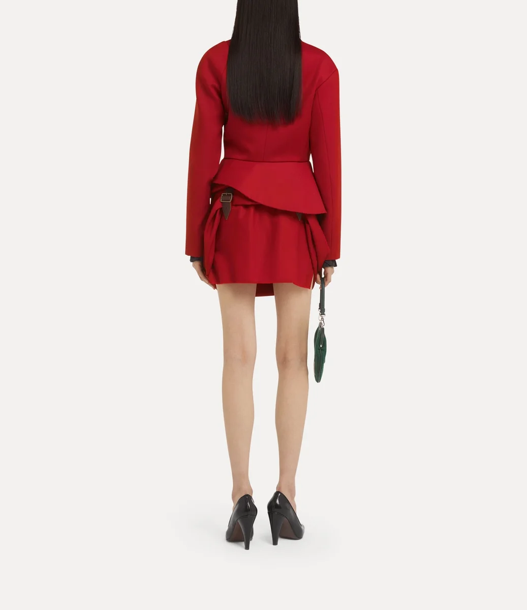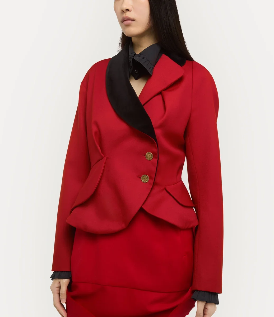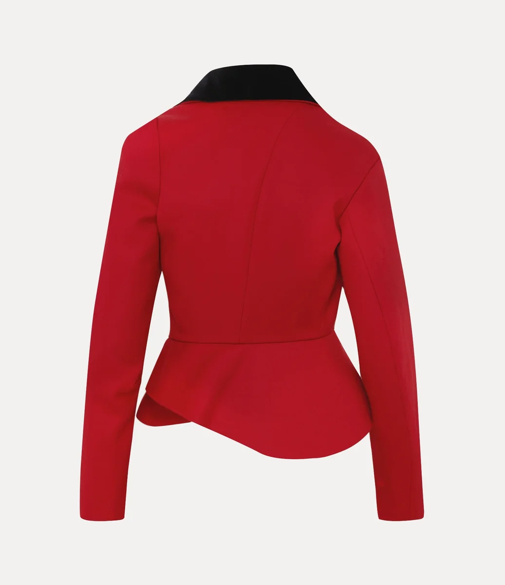 Confectionnée dans une laine douce, notre veste Stormy présente un col châle noir contrastant et une fermeture asymétrique sur le devant avec deux boutons dorés en relief. De délicates pinces soulignent la taille et se prolongent dans un ourlet peplum sculpté.
