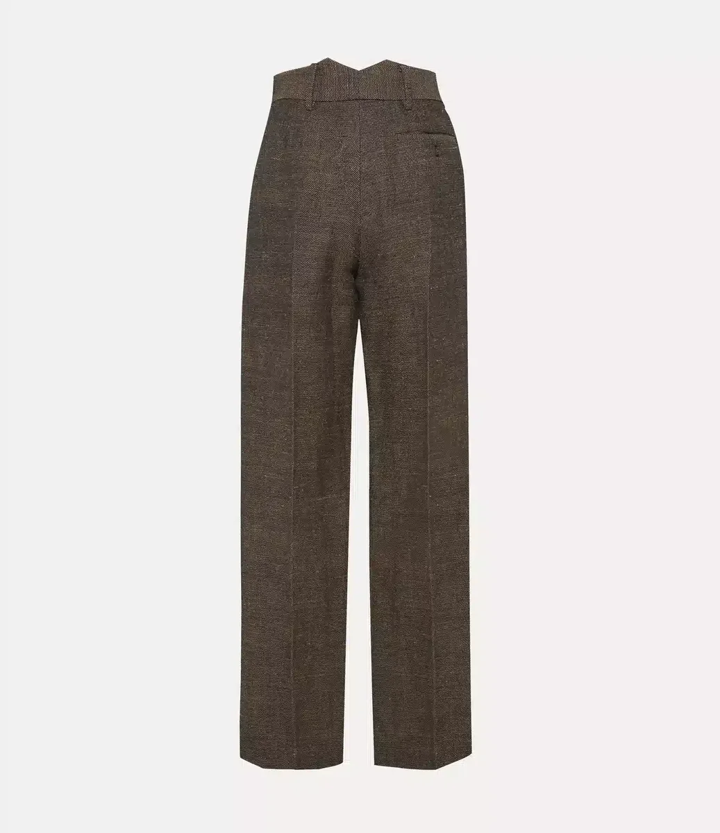 Notre pantalon Lauren ajusté est revisité cette saison dans un riche mélange de lin et de laine. La silhouette à jambes larges est définie par des plis marqués qui tombent en un ourlet droit et net. Une patte métallique signature en forme de globe sur la boucle de ceinture avant complète le design, clin d’œil à la philosophie de la maison qui consiste à propulser le passé vers l’avenir.