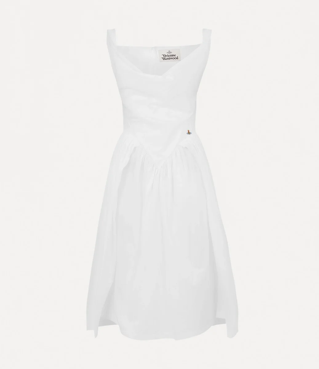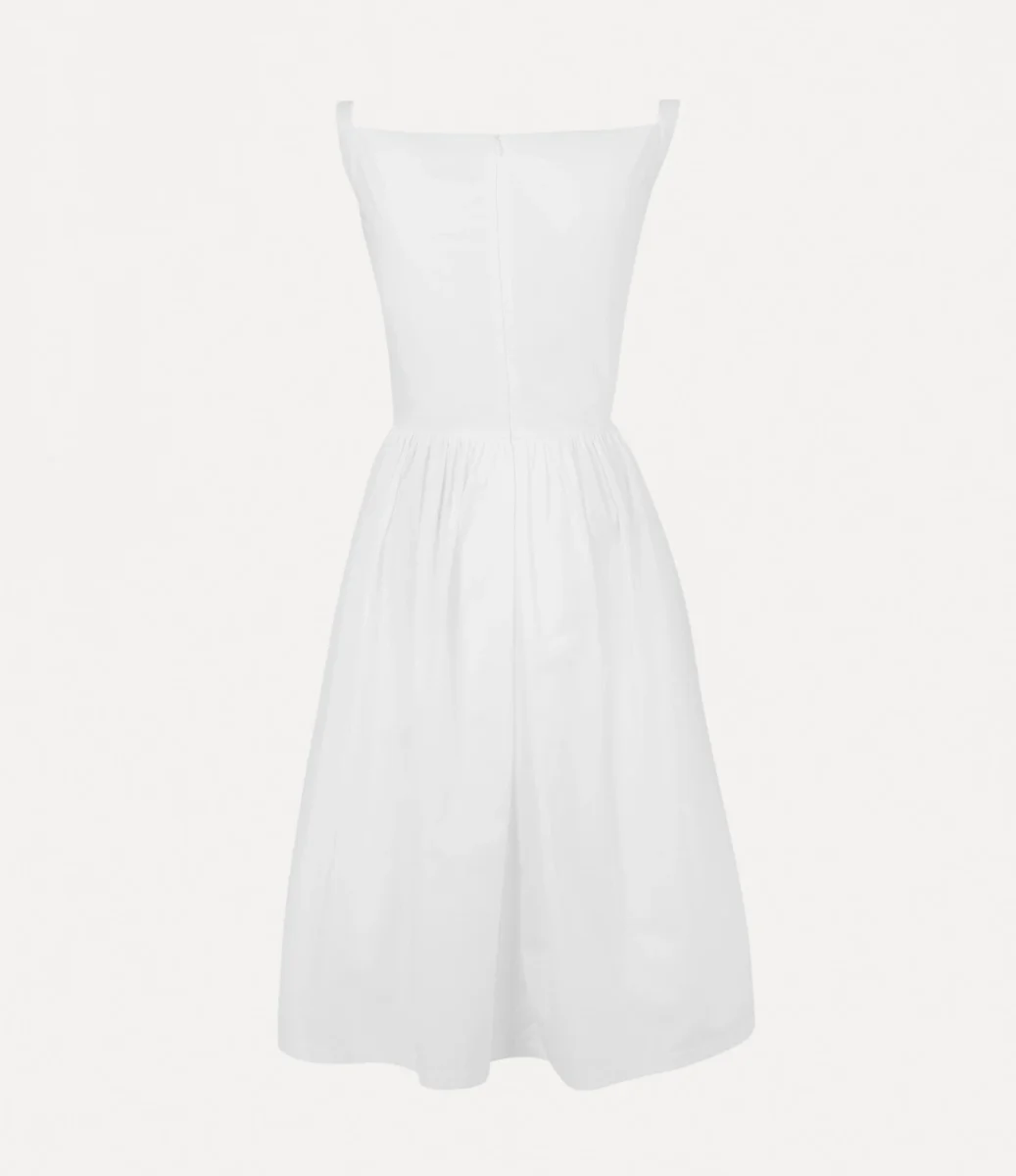 Notre robe Sunday fait son grand retour cette saison, après avoir fait ses débuts dans la collection printemps-été 1997 « Vive La Bagatelle » de Vivienne Westwood. Inspirée des femmes de la haute société du XVIIIe siècle, cette pièce présente une silhouette sculptée inspirée du corset, qui tombe en une longueur midi, rehaussée de notre globe brodé sur la hanche.