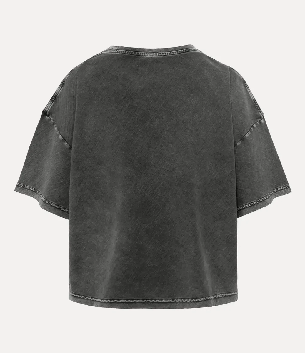 Le t-shirt Fawn Box est confectionné en coton biologique et présente un délavage charbon délavé pour un look vieilli. Doté d’un col rond et d’un ourlet droit, il est imprimé du motif fauve de la maison issu de la collection automne-hiver 2002 « Anglophilia », ainsi que du slogan « Make History ».