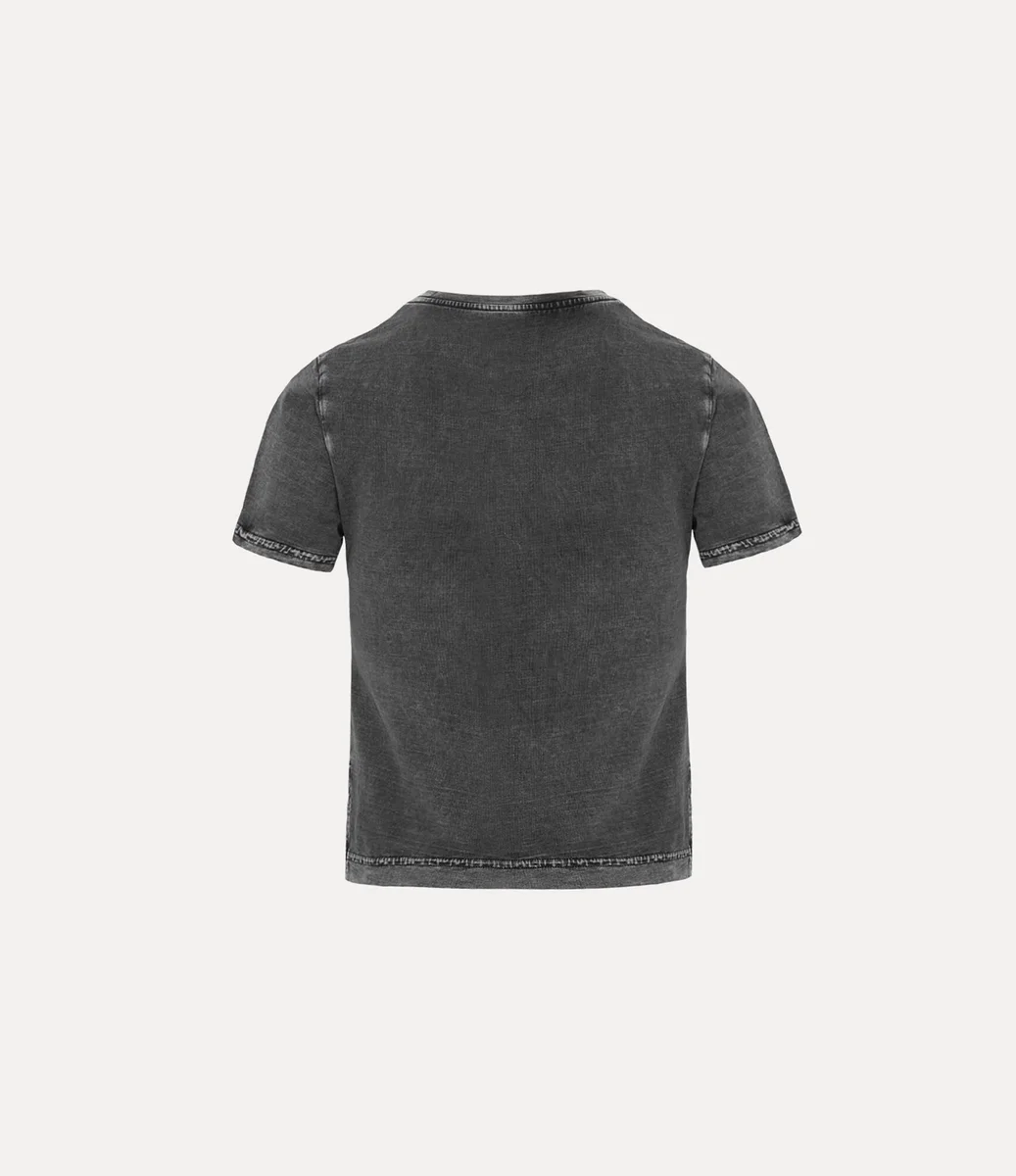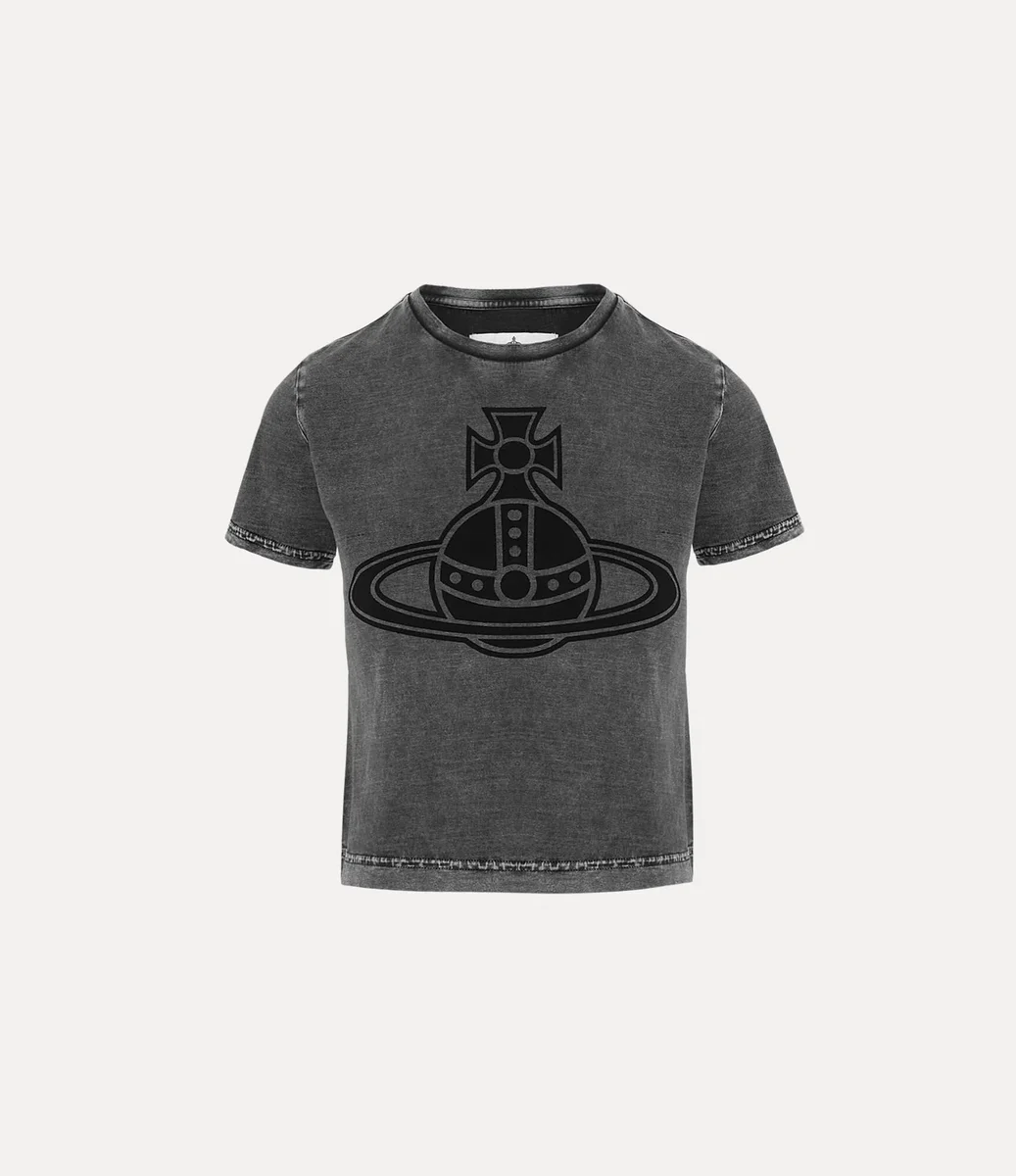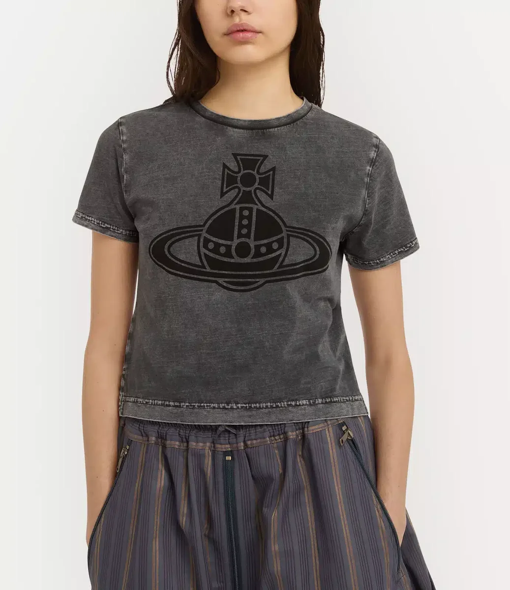 Notre t-shirt Paris Orb Mini Peru est confectionné dans un jersey de coton léger, avec une silhouette courte, un col rond classique et un ourlet asymétrique en escalier. Orné du motif orb de la maison, ce modèle fait écho à la vision de Vivienne, qui consiste à propulser la tradition vers l’avenir.