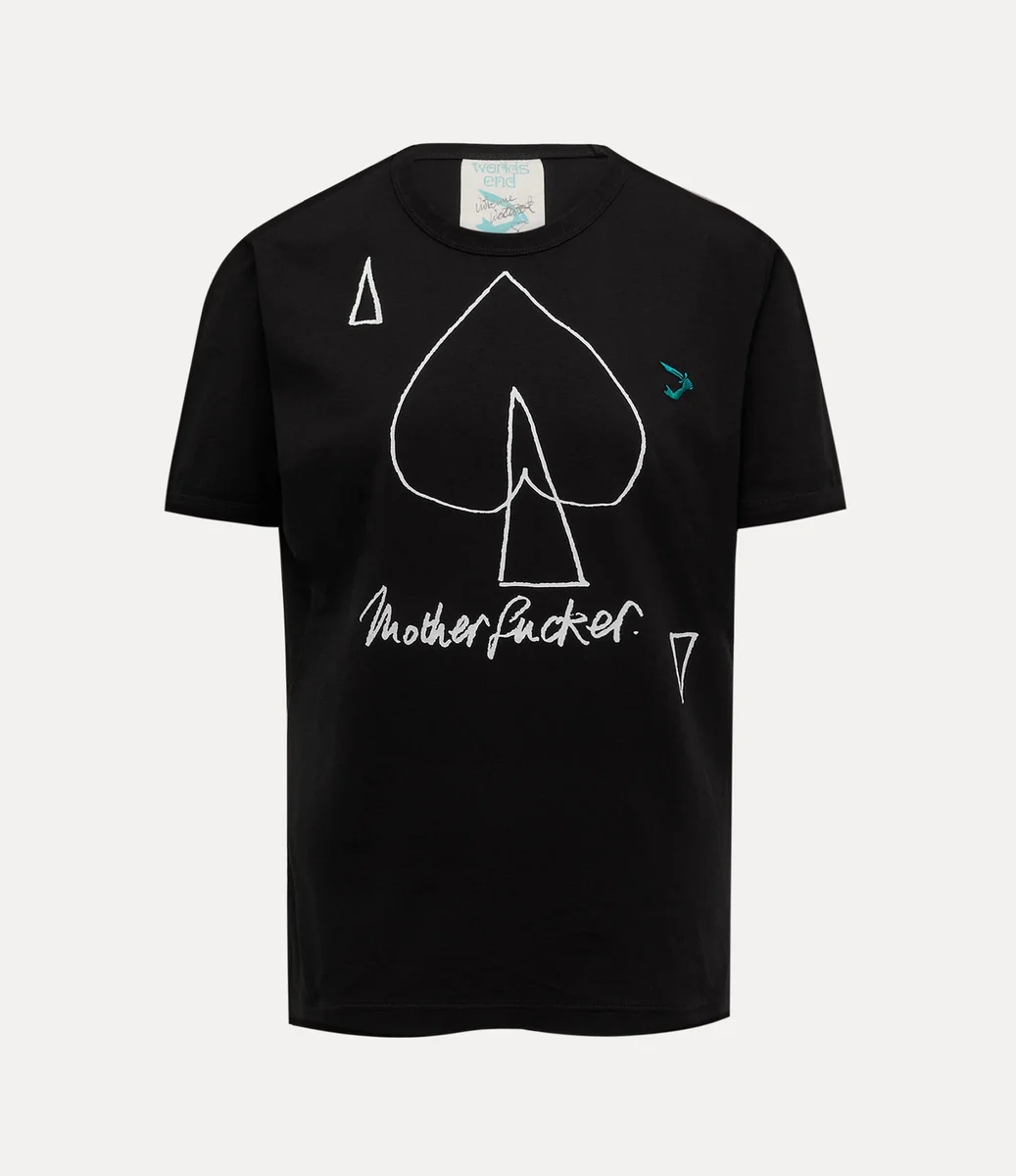 Notre t-shirt Worlds End Classic est confectionné en coton doux, avec des manches courtes et un col rond. Il est orné de la broderie d’archive « Arm and Cutlass » sur la poitrine et du motif « Motherfucker » de la maison, présenté pour la première fois lors du défilé Vivienne Westwood printemps-été 2018 « We Are Motherfucker », soulignant l’urgence de protéger notre planète, la Terre nourricière.