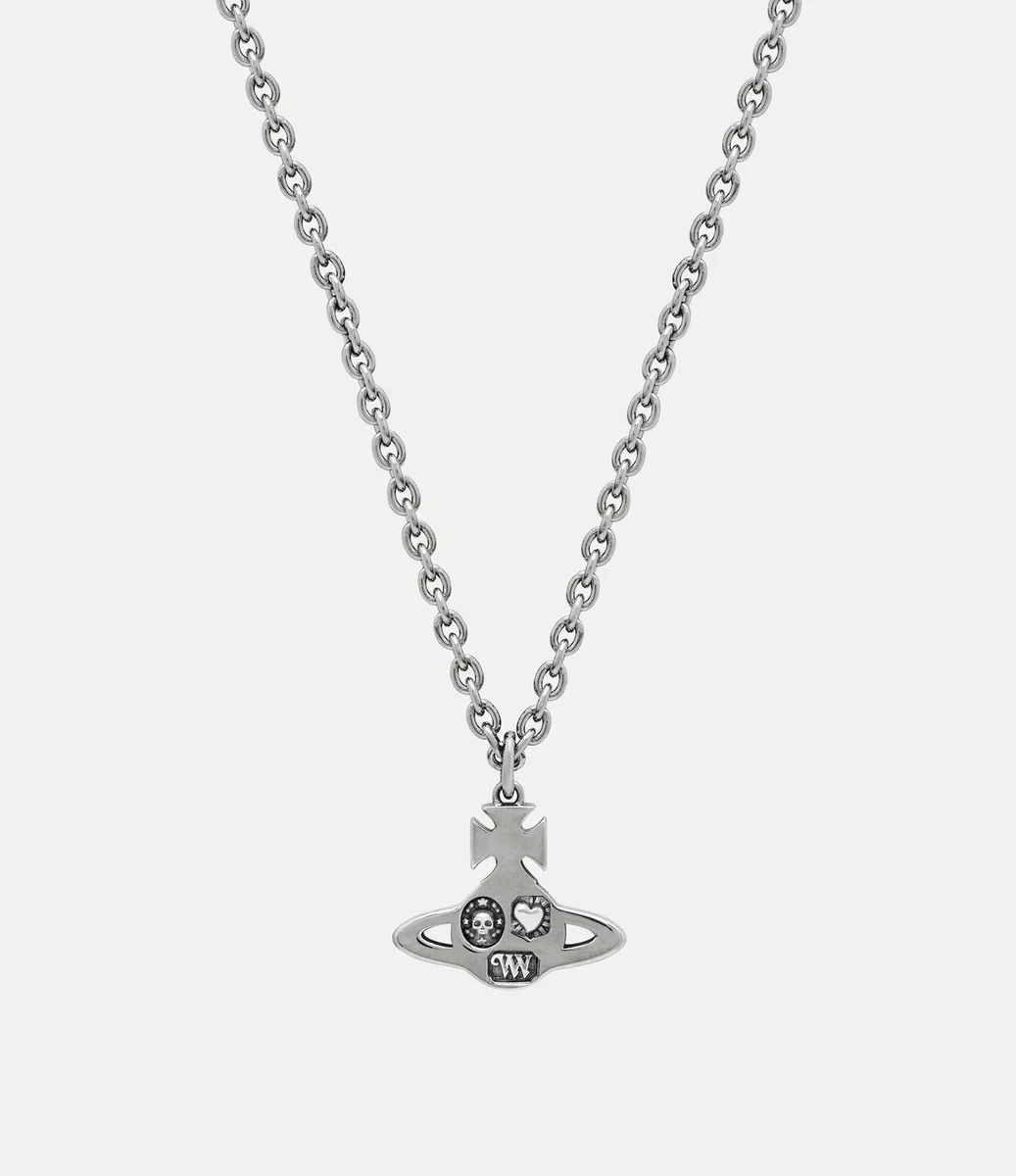 Notre collier pendentif Man. Crispin s’inspire du poinçonnage traditionnel, avec une iconographie maison finement détaillée estampillée au centre du motif. De forme classique, le pendentif est recouvert d’un placage antique.