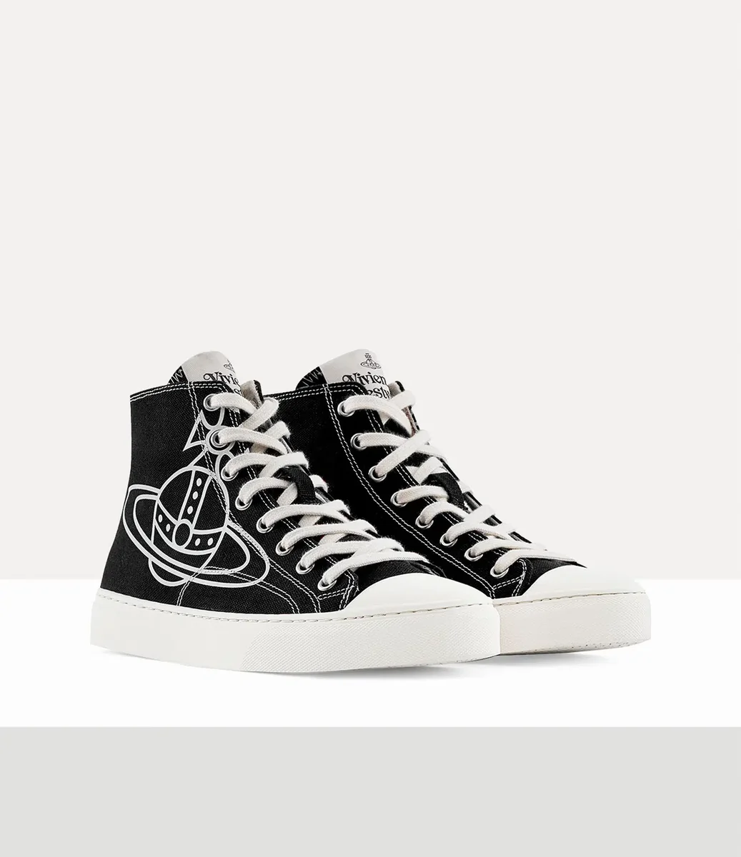 Nos baskets montantes en toile arborent le motif « Line Orb » issu des archives de la maison, synonyme de la vision de Vivienne qui consiste à propulser la tradition vers l’avenir. Ce modèle est confectionné en toile de coton et orné d’une étiquette tissée sur la languette.