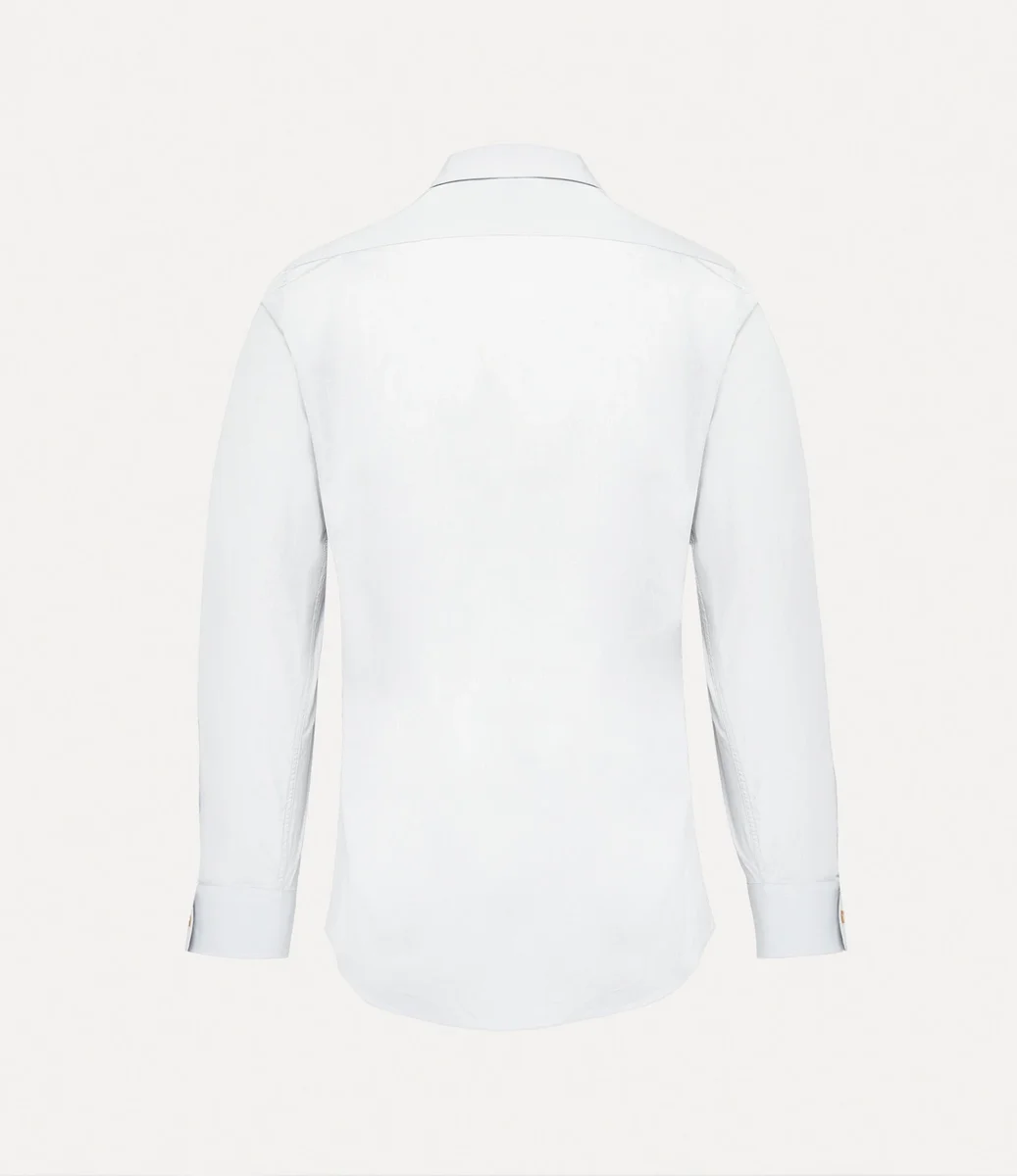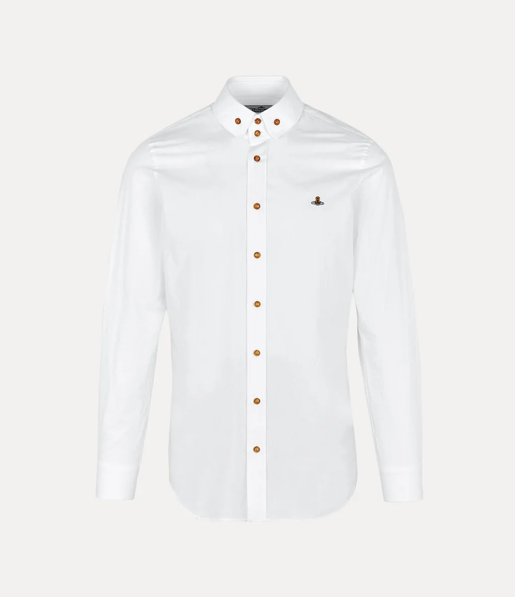 La silhouette de la chemise Krall à deux boutons s’inspire d’un modèle d’archive, avec le col à deux boutons emblématique de Vivienne. La pièce arbore notre broderie orb signature sur le côté gauche de la poitrine, synonyme de la vision de Vivienne qui consiste à propulser la tradition dans le futur.