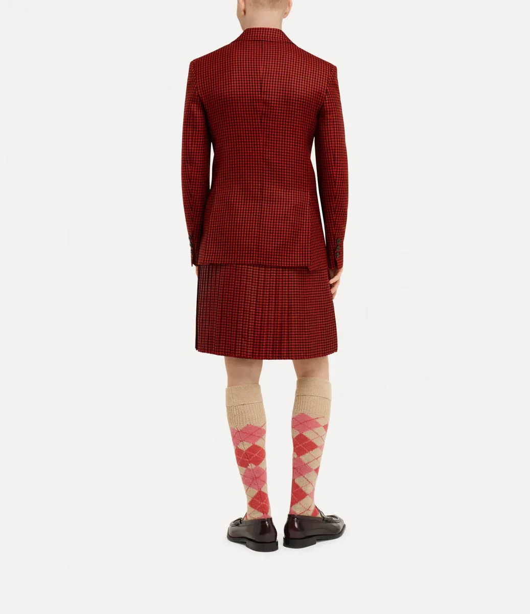 Notre veste One Button emblématique a été réinventée dans la laine vichy de cette saison, tissée dans des teintes vives et fermée par un seul bouton sur le devant. Encadrée par des revers crantés, la silhouette tombe sur un ourlet net avec des fentes arrière, complétée par notre doublure jacquard orb traditionnelle.