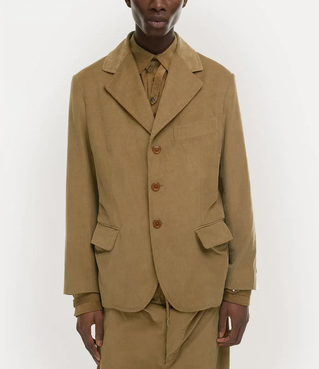 Notre veste Wreck est un modèle emblématique de la maison. Cette saison, elle est réinventée dans une finition en velours côtelé de coton doux, avec des boutons gravés sur le devant. Légèrement cintrée à la taille pour une coupe plus ajustée, elle est dotée d’un col à revers cranté.