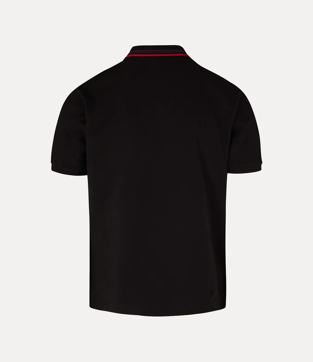 Notre polo classique a été revisité cette saison avec des boutons en nacre brillante et des détails rayés sur le col. Confectionné en coton doux, il présente un motif orb brodé sur le côté gauche de la poitrine, symbolisant la tradition, entouré des anneaux célestes de Saturne, représentant l’avenir.