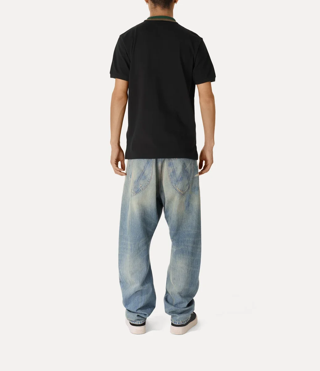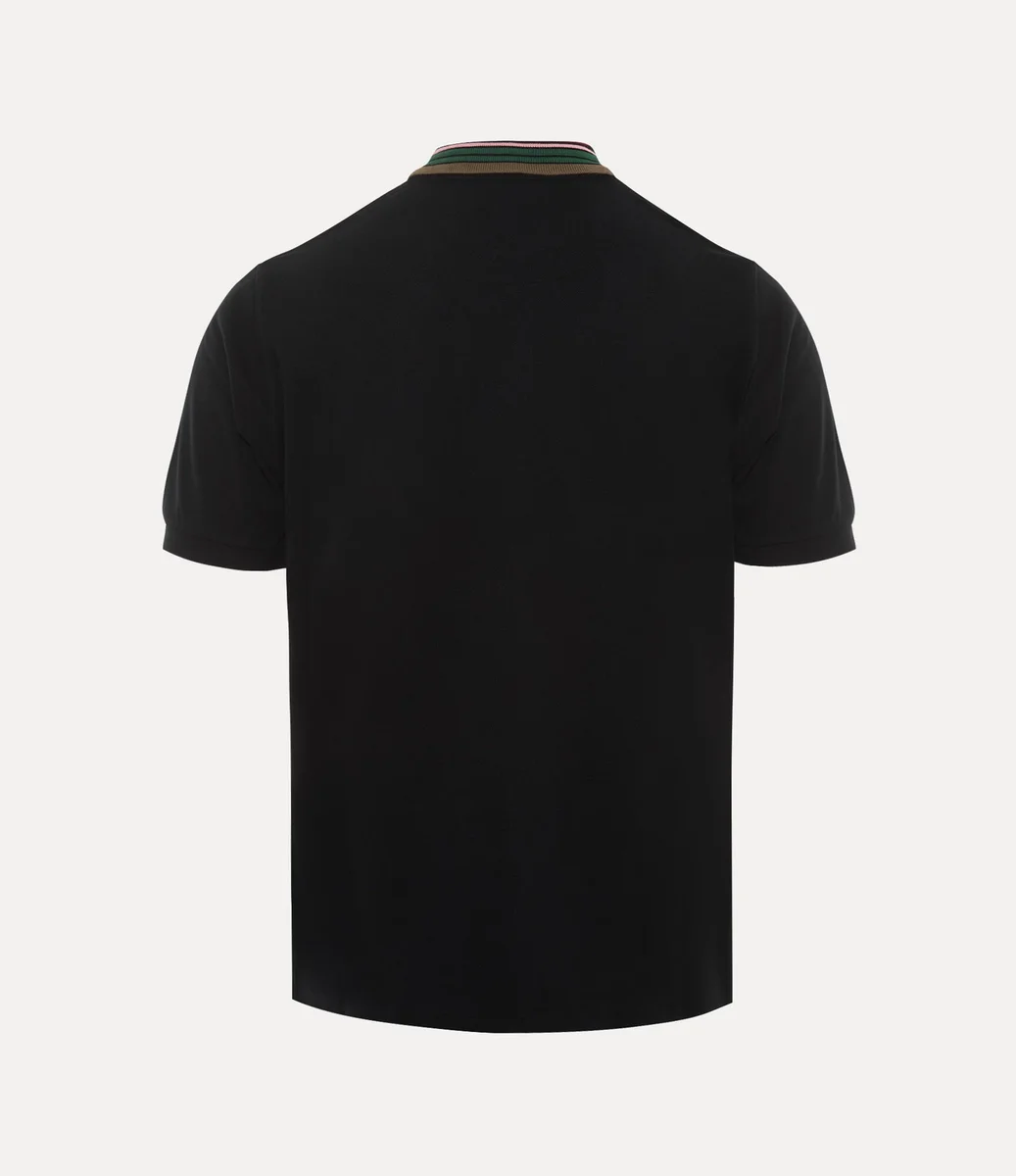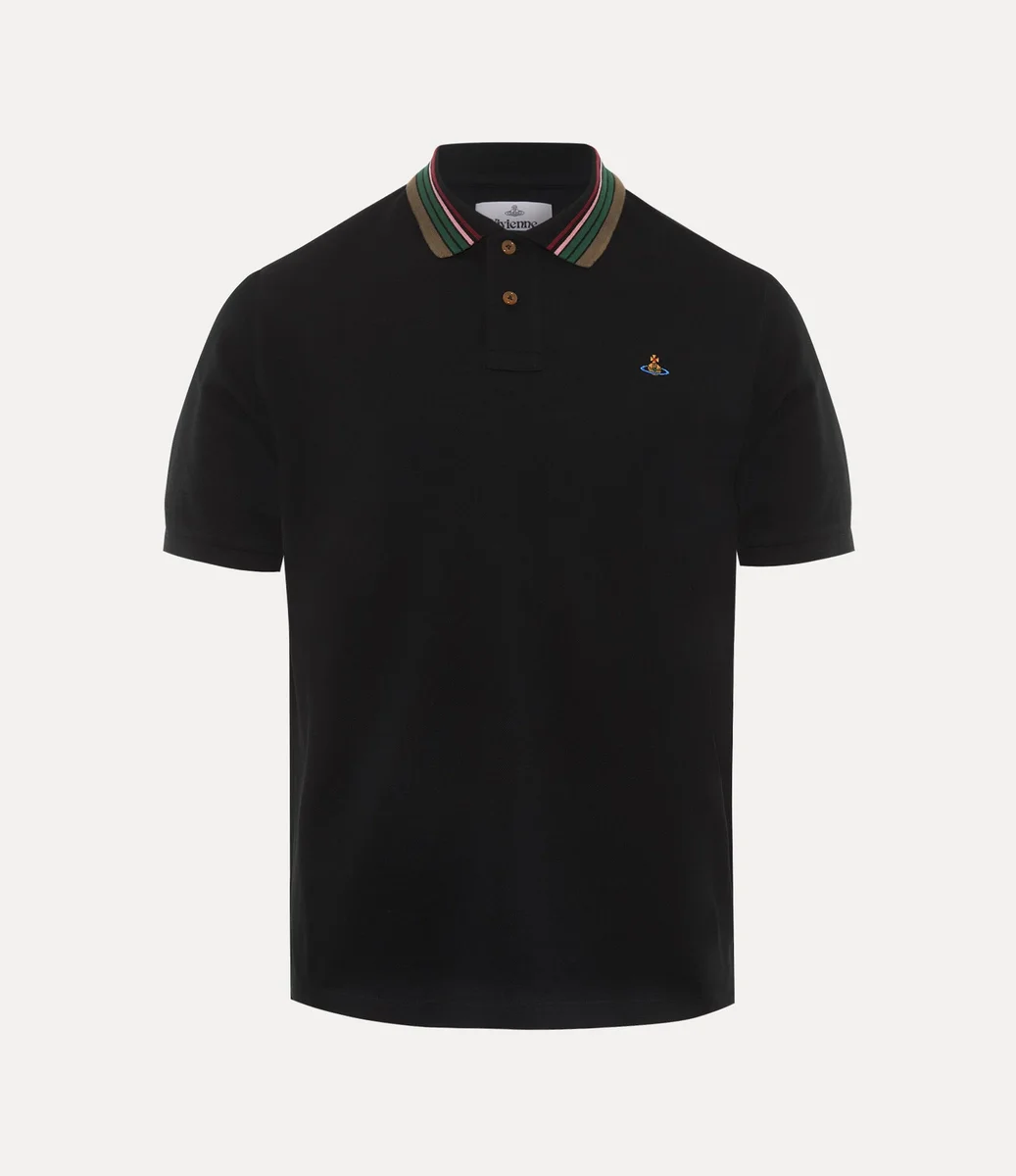 Notre polo classique présente un col contrasté, agrémenté de rayures multicolores. Confectionné en coton doux, il arbore un motif orbe brodé sur le côté gauche de la poitrine, symbolisant la tradition, entouré des anneaux célestes de Saturne, symbolisant l’avenir.