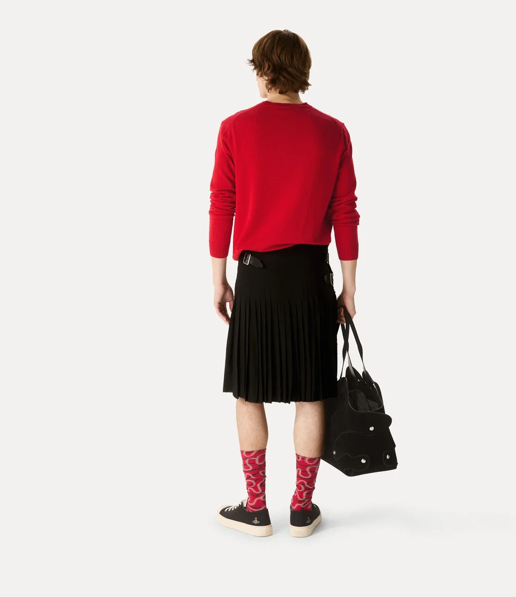 Le pull à col rond Alex est une pièce emblématique de la maison, confectionné cette saison dans un luxueux mélange de laine et de cachemire. Doté d’un col rond classique, il est orné de notre motif multicolore Orb sur la poitrine, incarnant la vision de Vivienne qui consiste à propulser la tradition dans le futur.